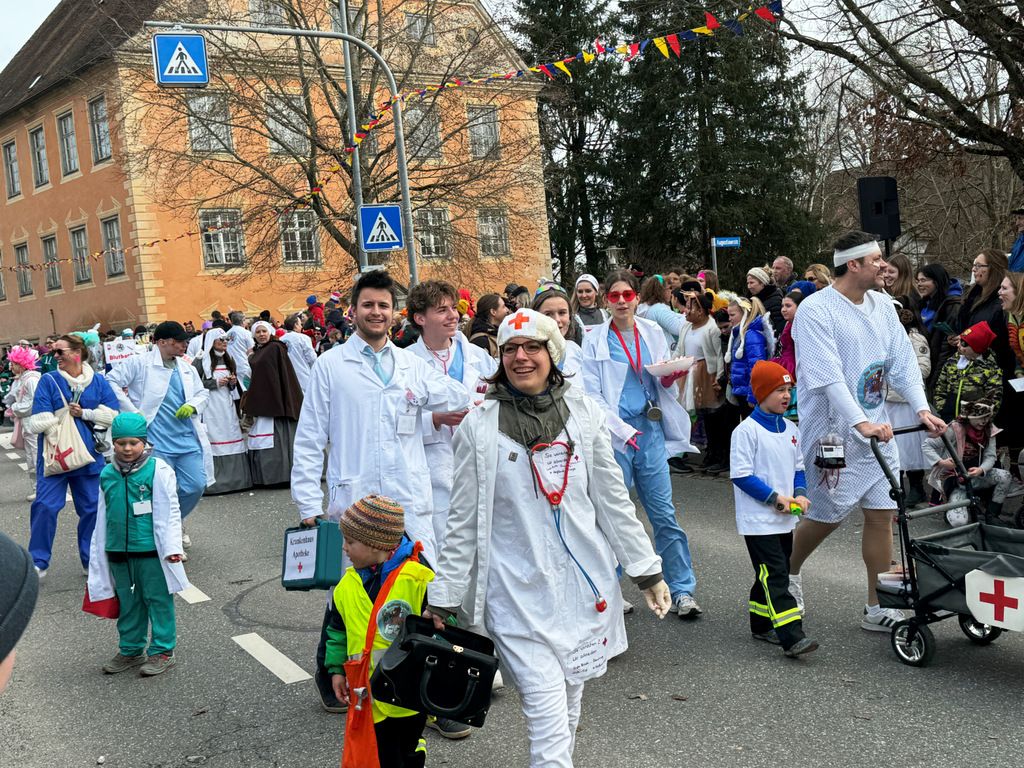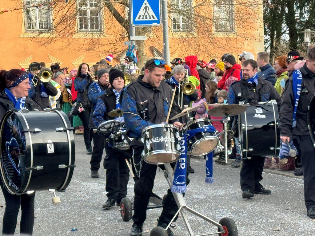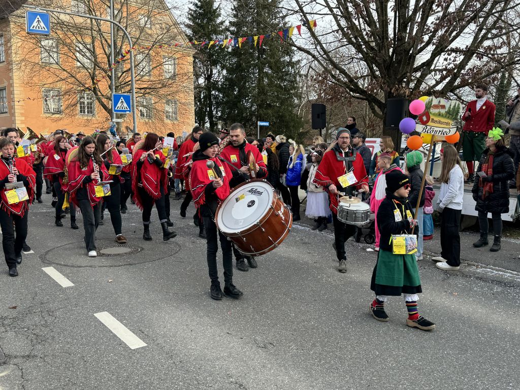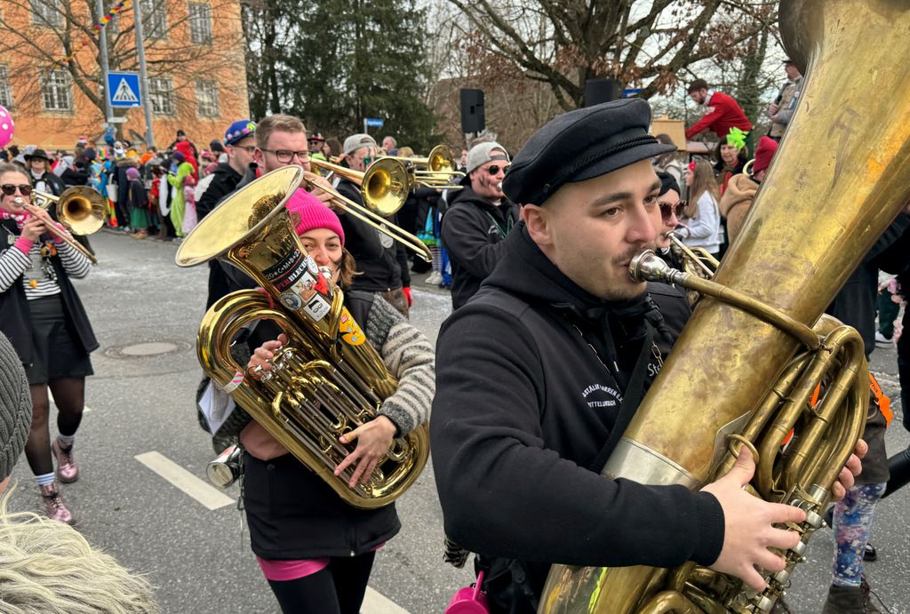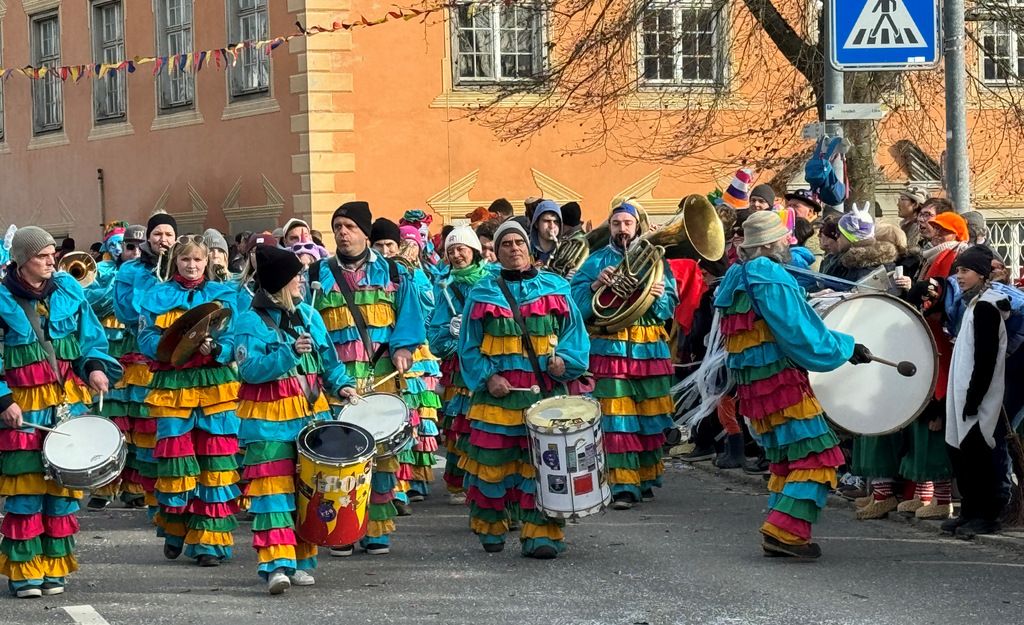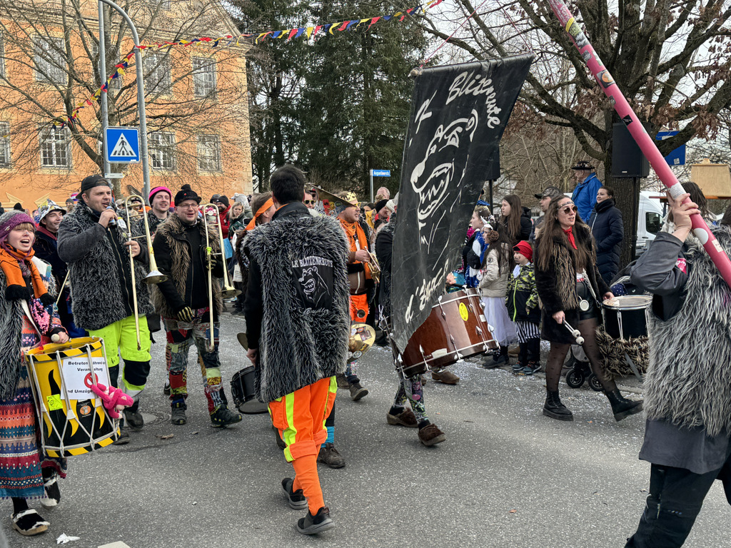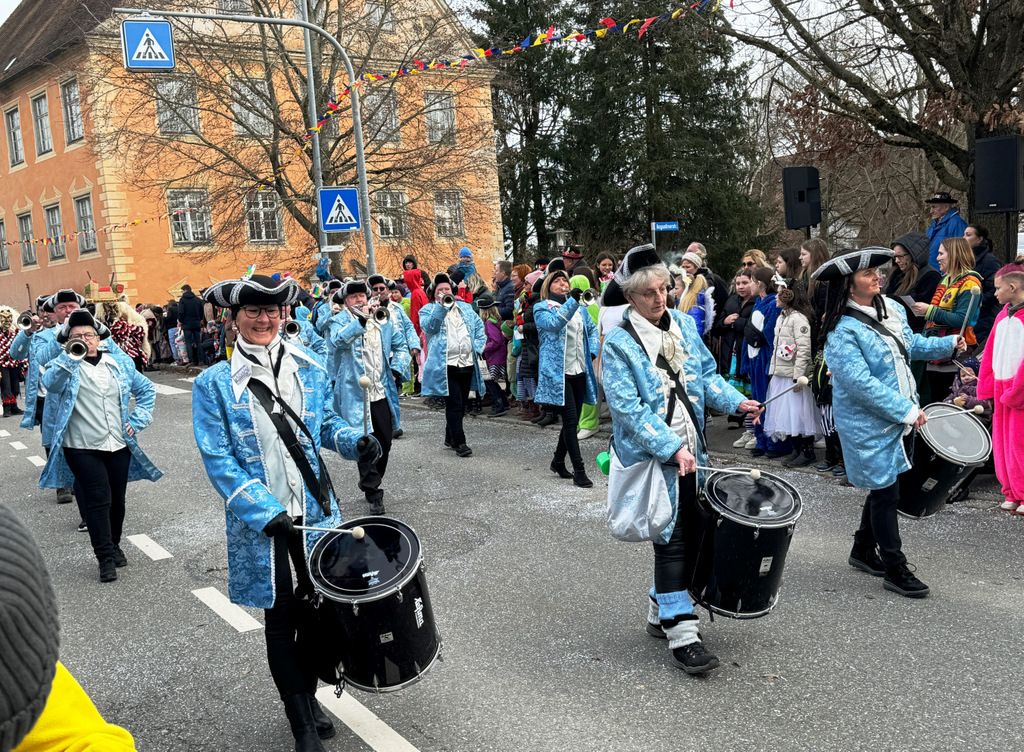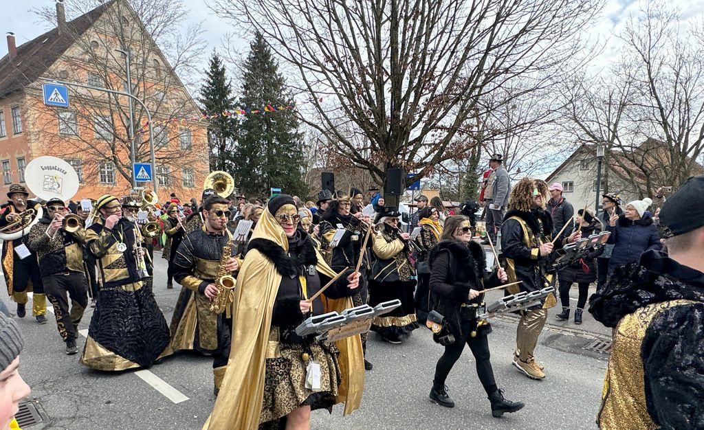 Dichten Menschenketten am Straßenrand verfolgten das närrische Umzugsgeschehen auch heuer. Dieses Mal sorgten 20 Musikgruppen aus nah und fern für schmissige, närrische Klänge und spielten unverdrossen Fasnachtsmärsche, fasnachtliche Ohrwürmer und heiße Rhythmen. Die Zuschauer klatschten eifrig mit und manche bewegten sich sogar zum Takt der Musik nach links, nach rechts, sogar vor und zurück