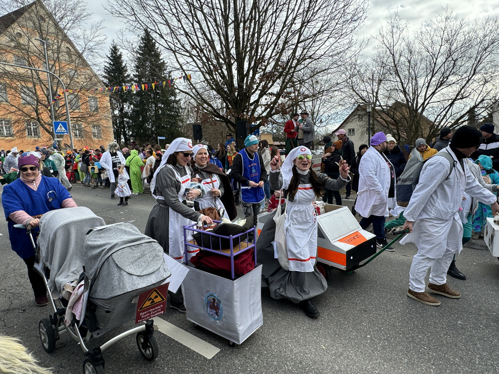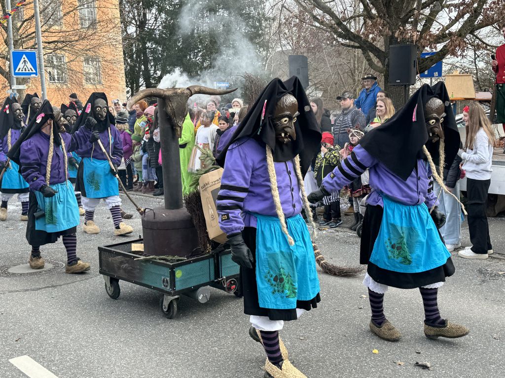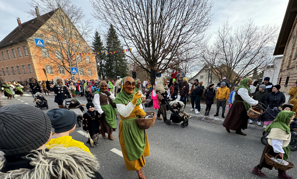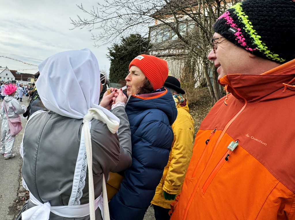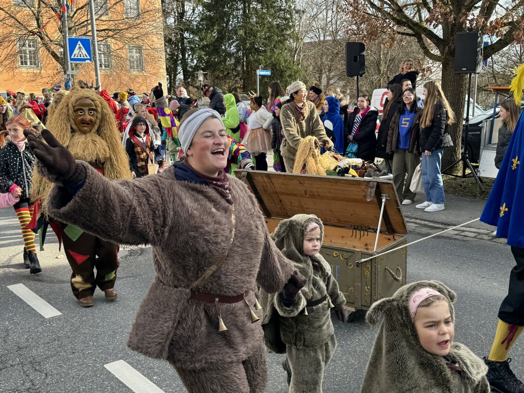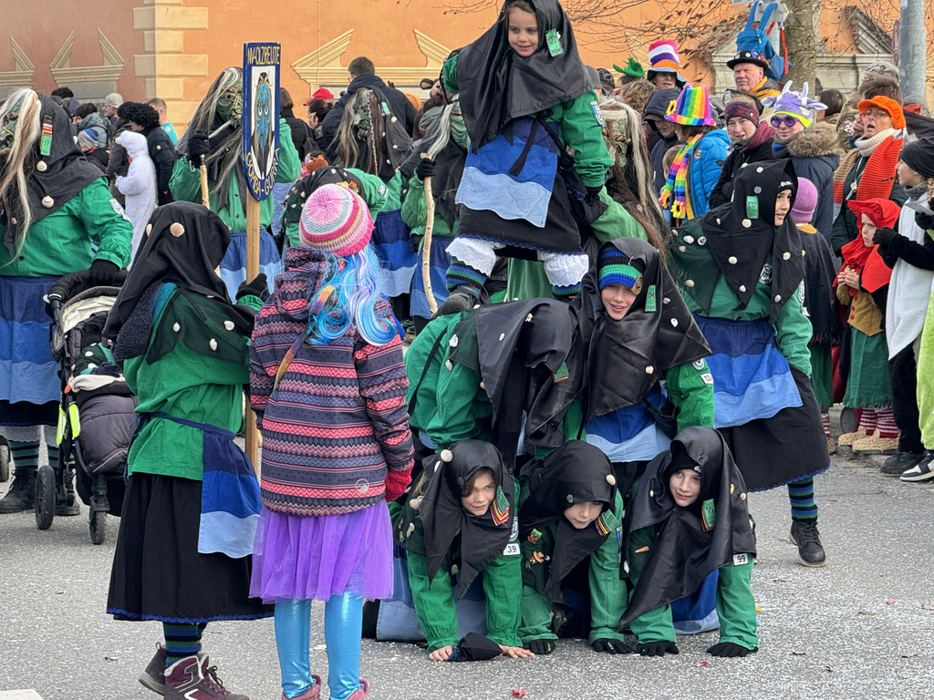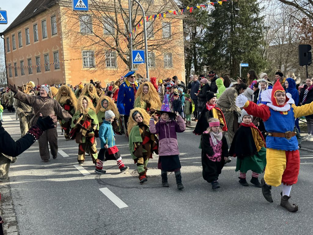 Viele Kleinkinder, manche davon im Kinderwagen, durften das närrische Spektakel hautnah miterleben und hatten offensichtlich Spaß dabei. An Nachwuchs mangelt es den Narrengilden und Narrenzünften offensichtlich nicht.