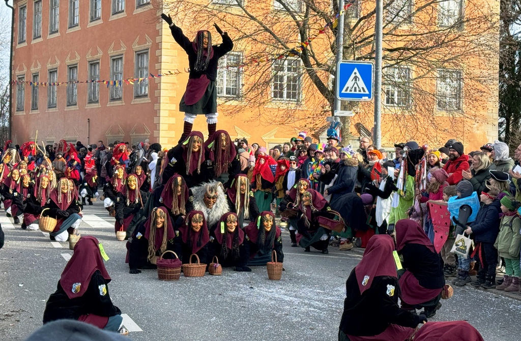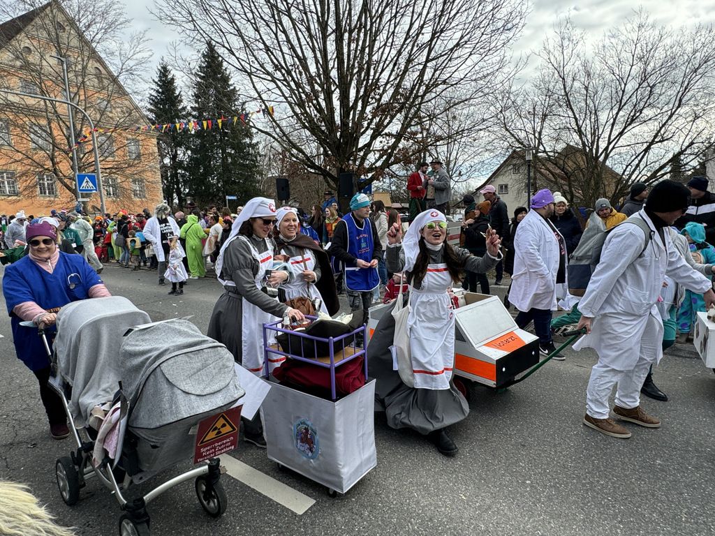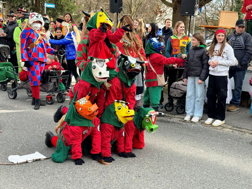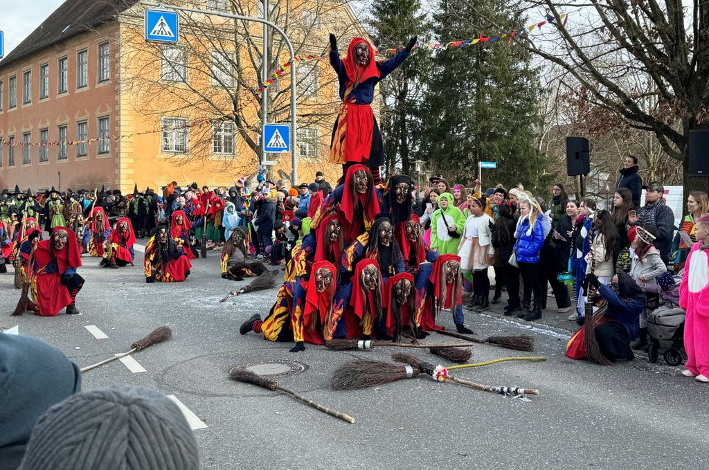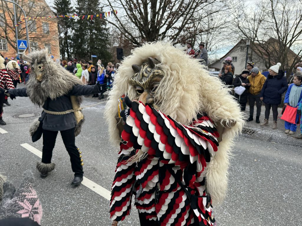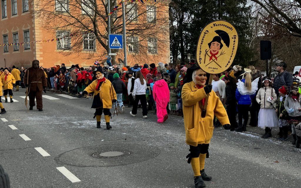 Viele Kleinkinder, manche davon im Kinderwagen, durften das närrische Spektakel hautnah miterleben und hatten offensichtlich Spaß dabei. An Nachwuchs mangelt es den Narrengilden und Narrenzünften offensichtlich nicht.