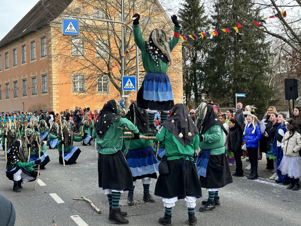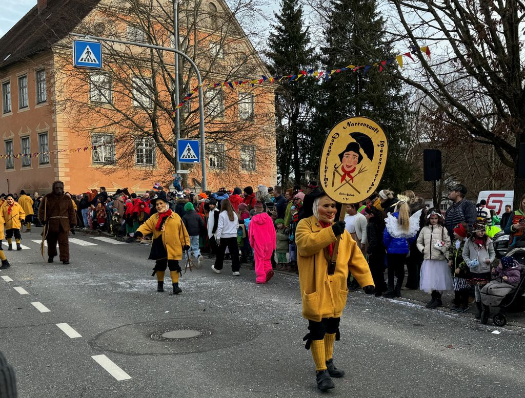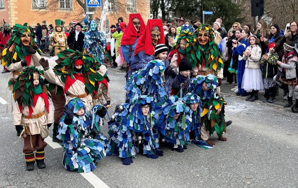 Etliche der 30 Zünfte hatten mehrere mitspringende Fasnetsgruppen dabei. Sie trieben allerlei Schabernack mit den Zuschauern, sparten nicht mit Konfetti. Vor allem Kinder durften sich am reichlichen Bonbon-,Schlotzer- und Gummibärchensegen erfreuen.