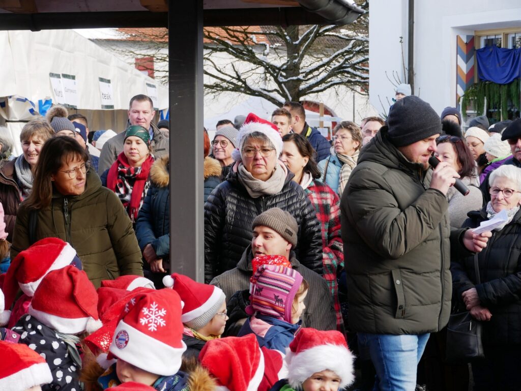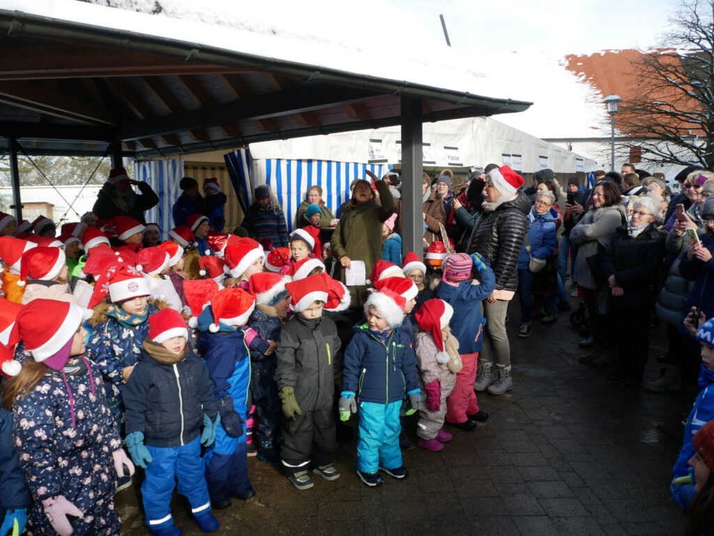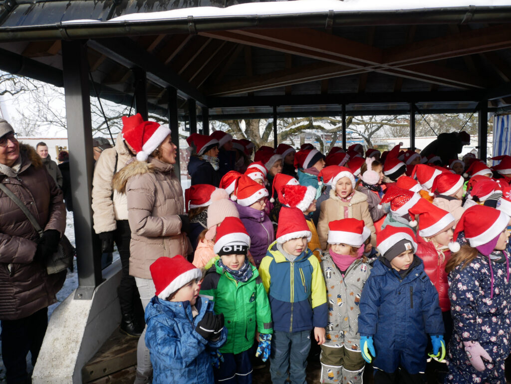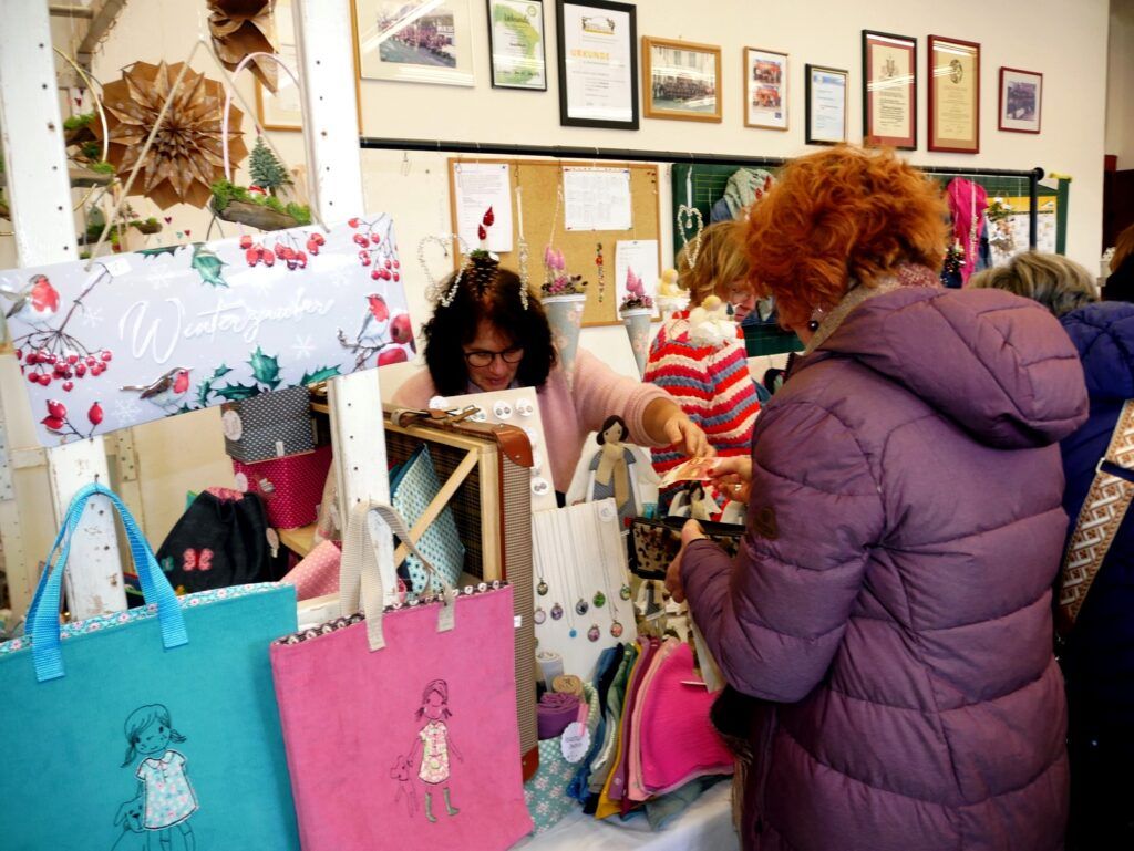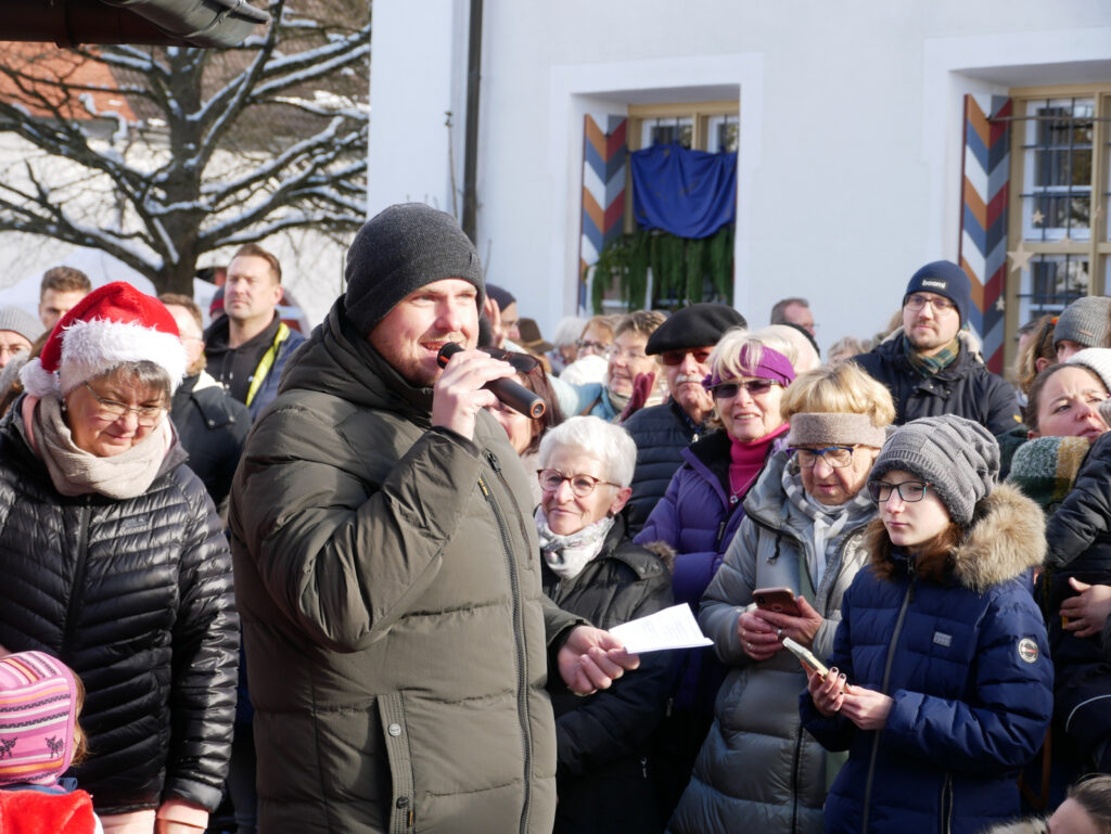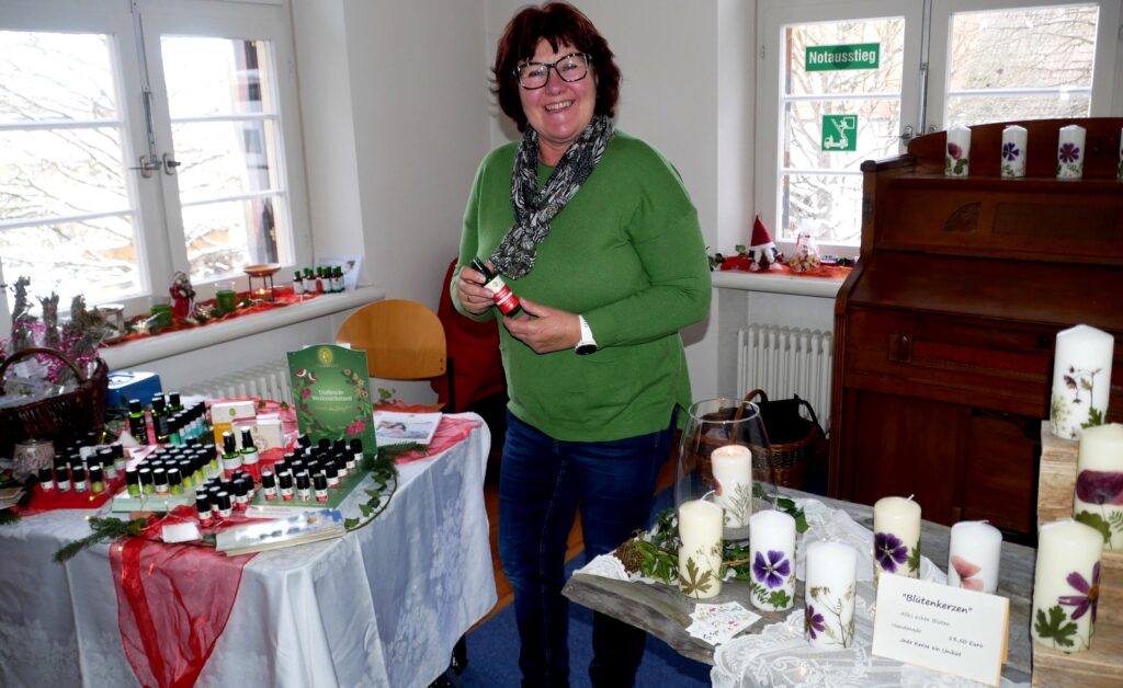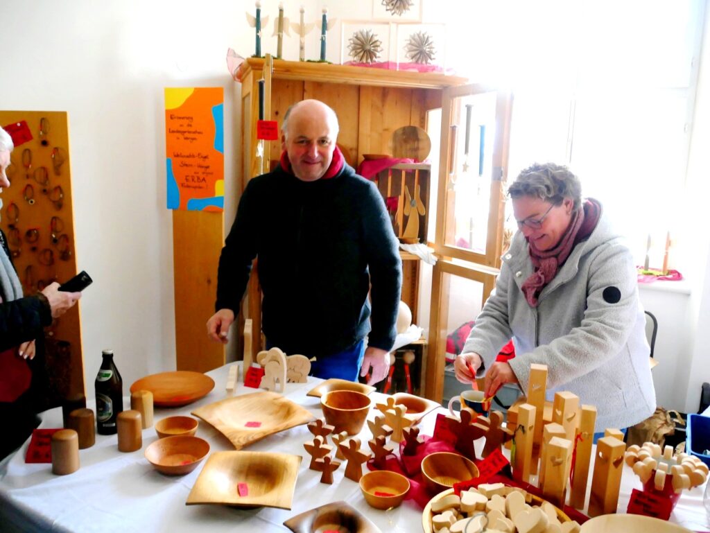 Zu den Höhepunkten gehörte wiederum das kulturelle Angebot in der Pfarrkirche St. Johannes Baptist. Hunderte Menschen strömten am Nachmittag in die Kirche, um sich zuerst an einer meditativen „Klangzeit“ des Musikerduos Verena Westhäußer und Johannes Tress zu erfreuen. Traditionell glänzte „Tausendsassa“ Barny Bitterwolf, dieses Mal mit Sangespartner Roland Fitz, mit Auszügen aus seinem Werk „Frai de hait, sisch Weihnachtszeit“ und mit instrumental begleiteten, von ihm verfassten schwäbischen Liedern und Gedichten. Proppenvoll war die Kirche auch, als der Frauenchor „InTakt“ aus Bergatreute erstmals hier als Vokalensemble einen ganz starken Auftritt mit vielstimmigem Gesang und den „Vokalitäten“, geleitet durch Trudi Altmann, hatte.