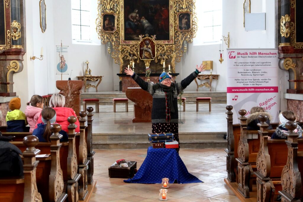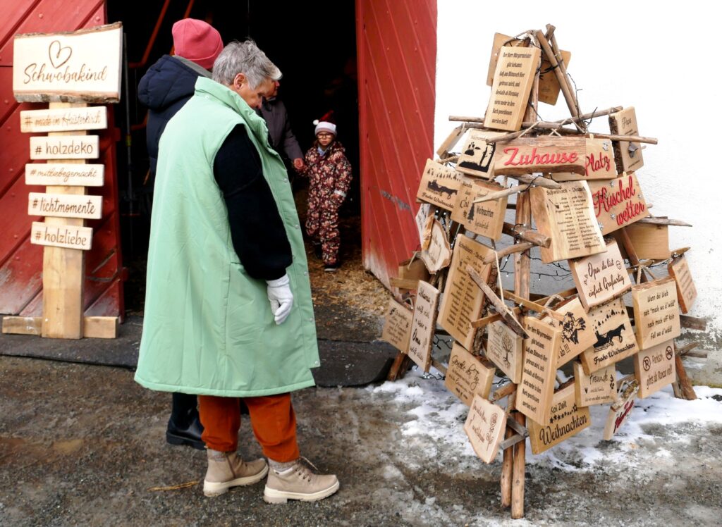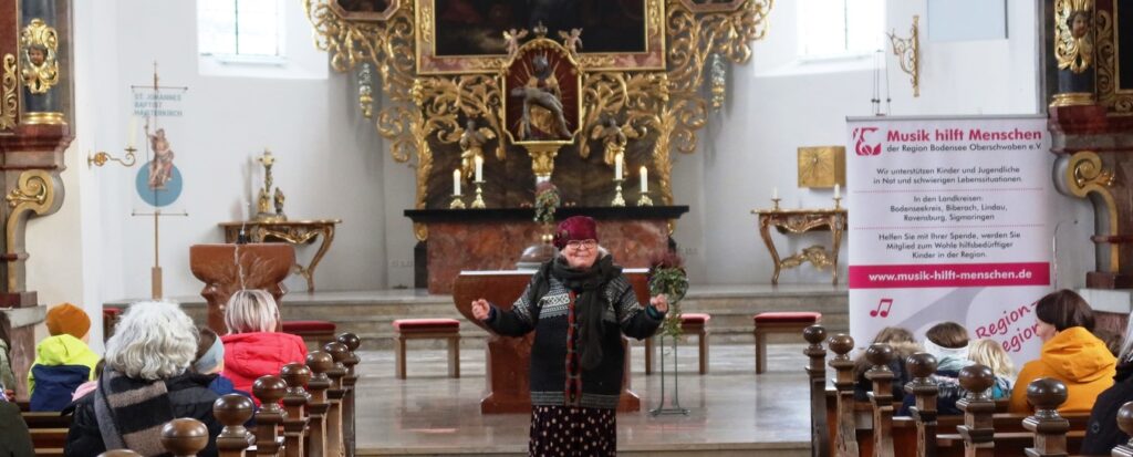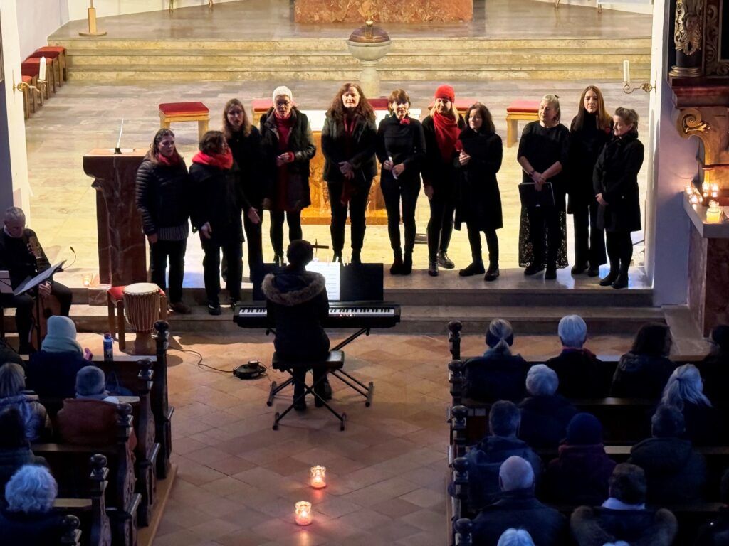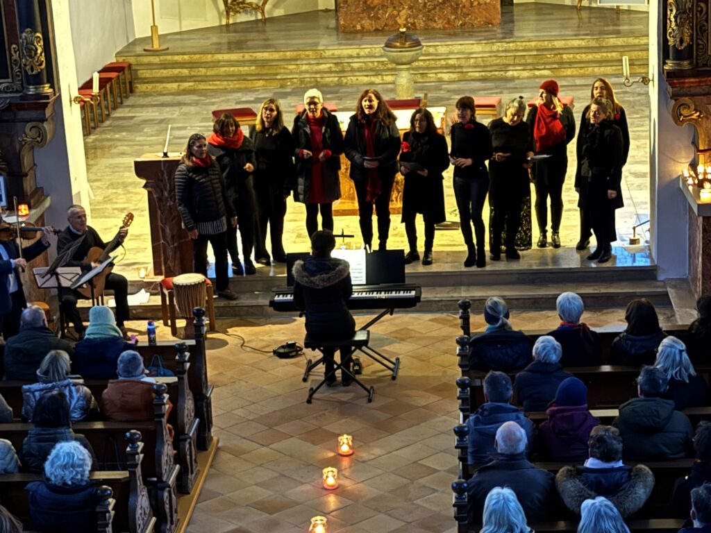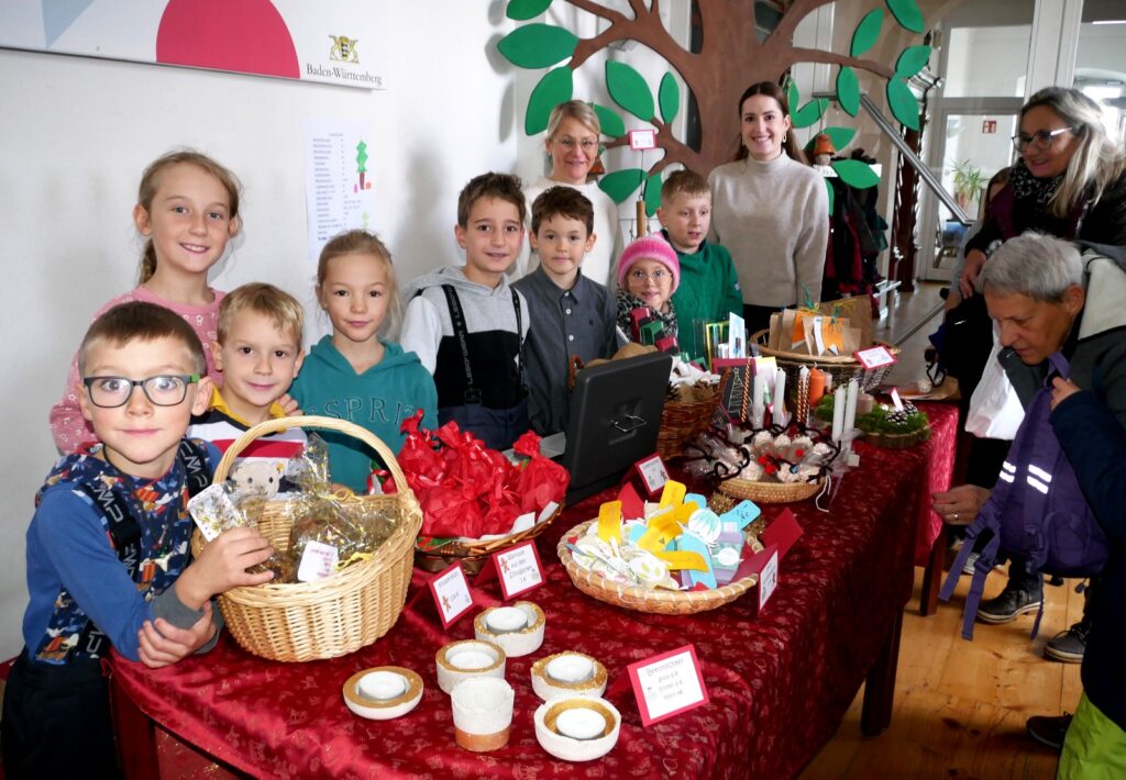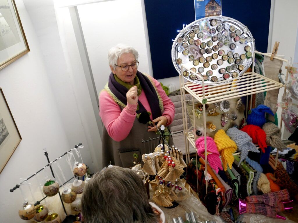 Zu den Höhepunkten gehörte wiederum das kulturelle Angebot in der Pfarrkirche St. Johannes Baptist. Hunderte Menschen strömten am Nachmittag in die Kirche, um sich zuerst an einer meditativen „Klangzeit“ des Musikerduos Verena Westhäußer und Johannes Tress zu erfreuen. Traditionell glänzte „Tausendsassa“ Barny Bitterwolf, dieses Mal mit Sangespartner Roland Fitz, mit Auszügen aus seinem Werk „Frai de hait, sisch Weihnachtszeit“ und mit instrumental begleiteten, von ihm verfassten schwäbischen Liedern und Gedichten. Proppenvoll war die Kirche auch, als der Frauenchor „InTakt“ aus Bergatreute erstmals hier als Vokalensemble einen ganz starken Auftritt mit vielstimmigem Gesang und den „Vokalitäten“, geleitet durch Trudi Altmann, hatte.
