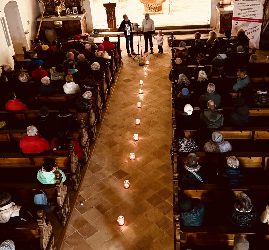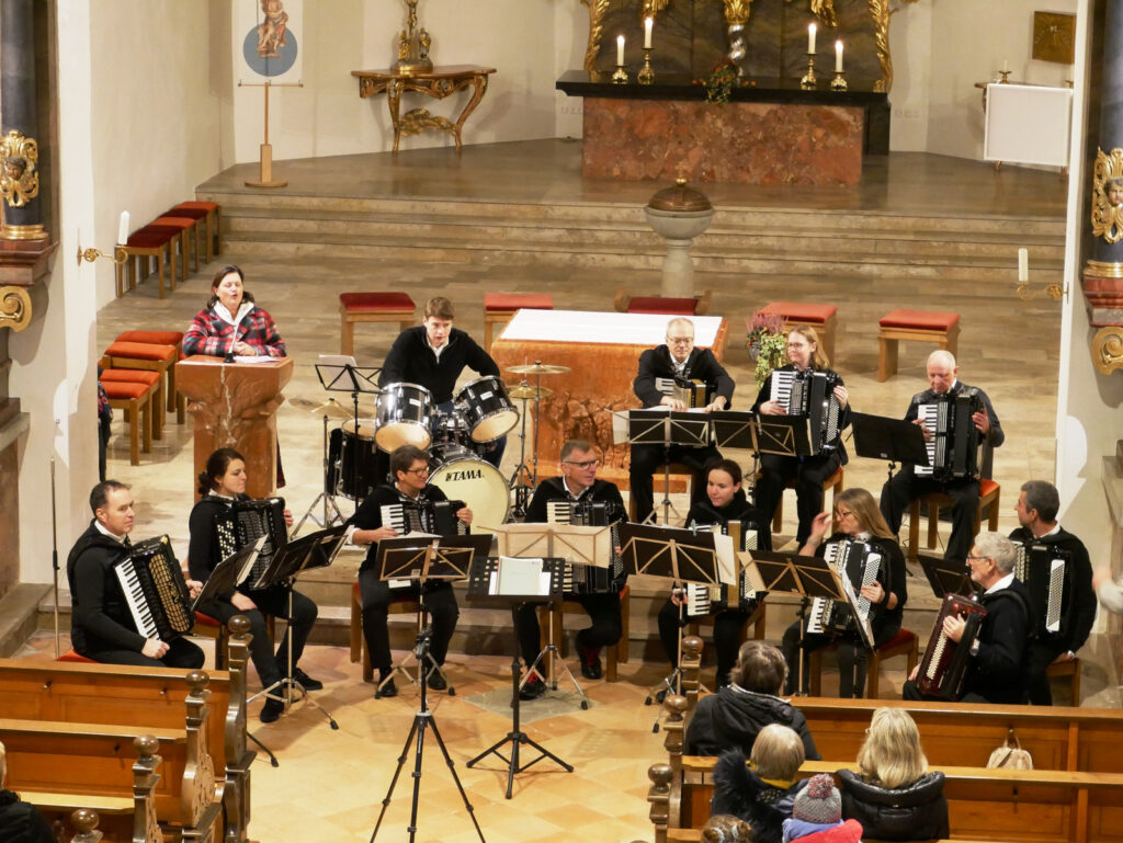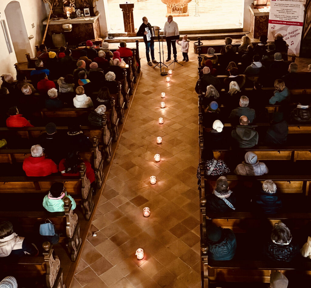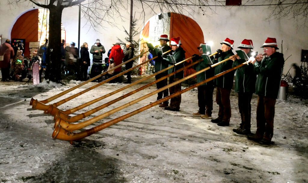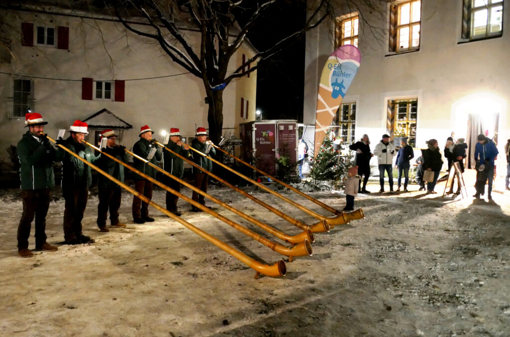 Verzaubert mit klassischen Melodien und Rhythmen hatte das Akkordeonorchester „Salemer Tal“ mit recht feinen Akkordeonklängen die noch ab 18.00 Uhr in der Kirche verbliebene, beifallsfreudige Zuhörerschar. Ganz zur Freude vieler Kinder war am frühen Nachmittag das Märchenprogramm von Erzählerin Dora Dipfele ebenfalls in die Kirche verlegt worden. Zum dritten Mal bei den Lichtmomenten ließen die Alphornbläser aus Schönwald/Schwarzwald bei mehreren Auftritten im Freien alpenländisches Liedgut erklingen. Dazu gehörte auch Liedgut wie der „Andachtsjodler“ oder auch “Jubilate Domino“.