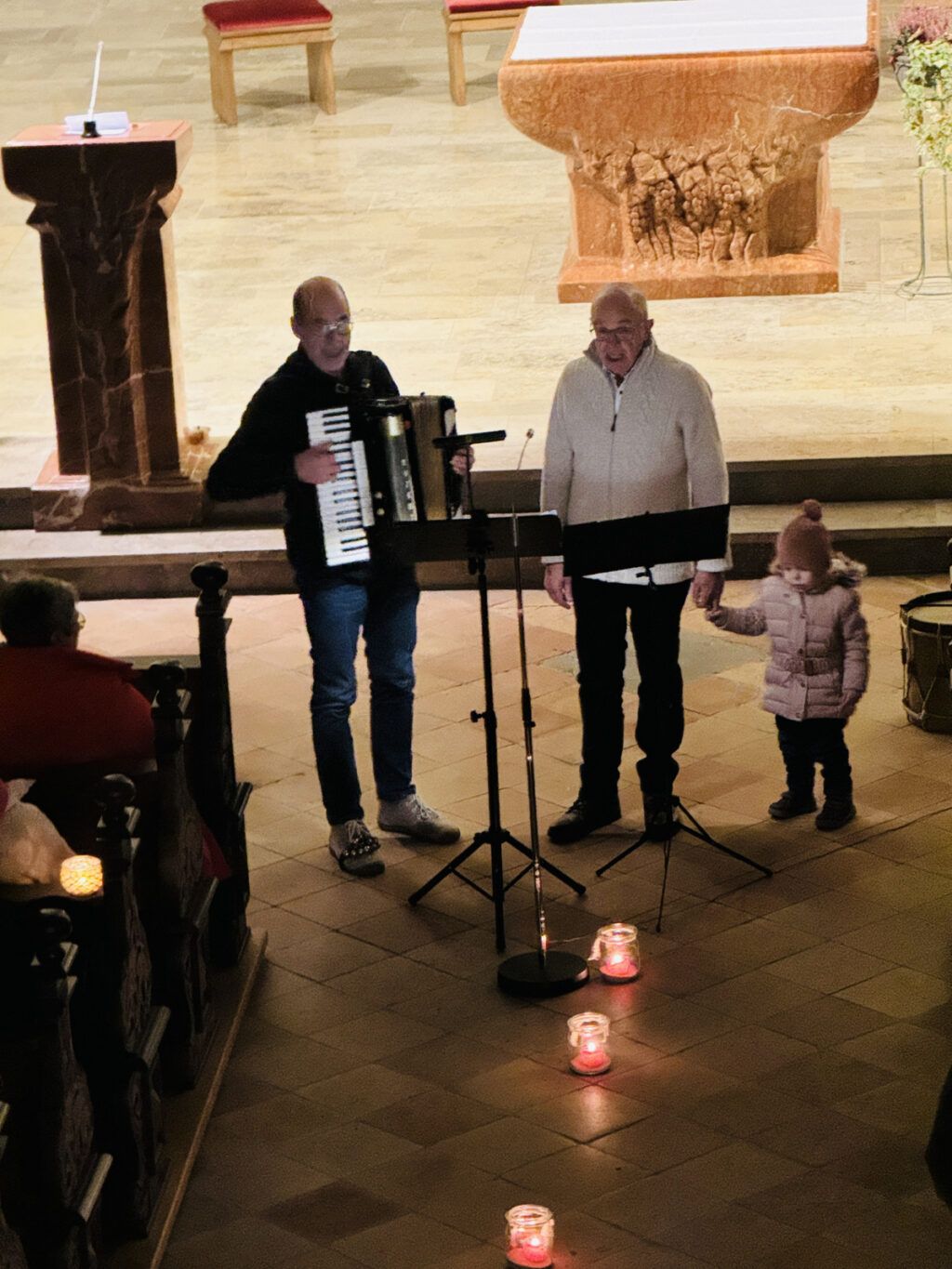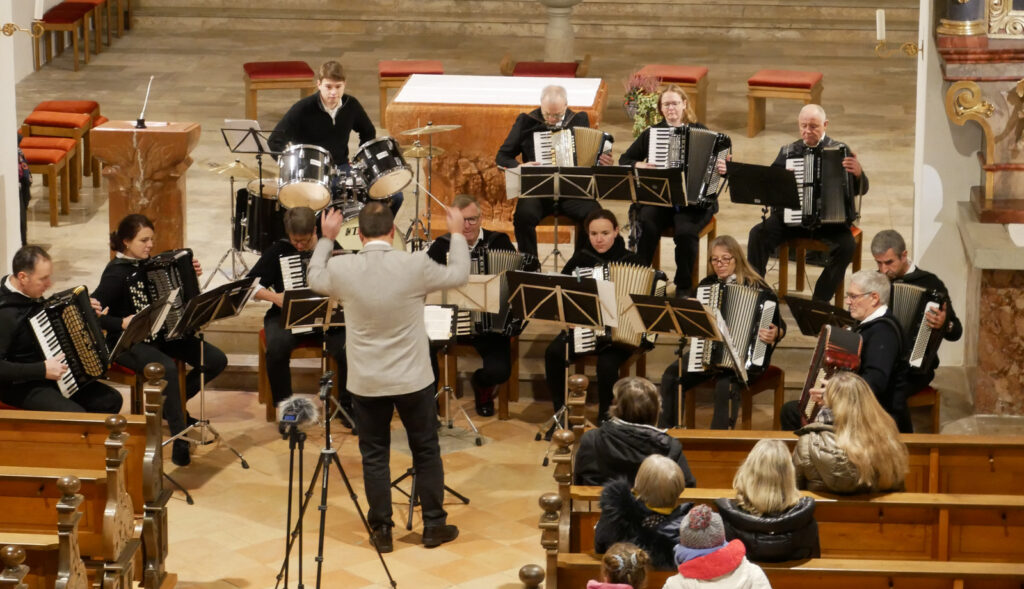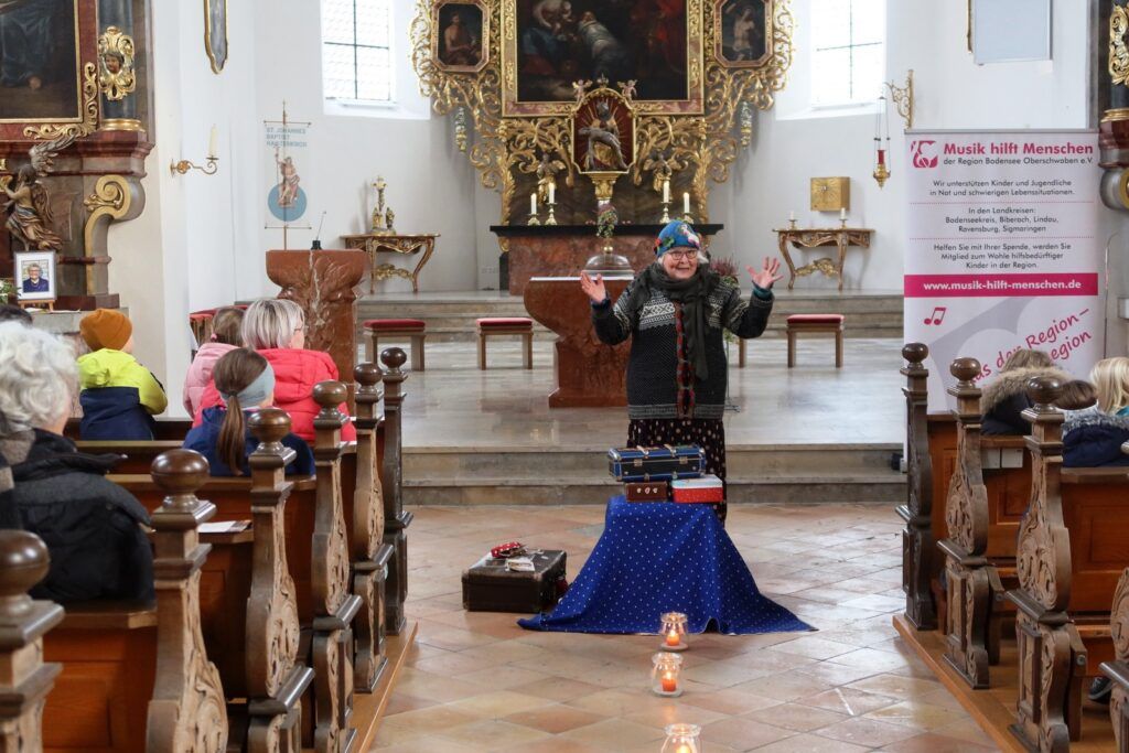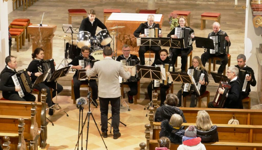 Verzaubert mit klassischen Melodien und Rhythmen hatte das Akkordeonorchester „Salemer Tal“ mit recht feinen Akkordeonklängen die noch ab 18.00 Uhr in der Kirche verbliebene, beifallsfreudige Zuhörerschar. Ganz zur Freude vieler Kinder war am frühen Nachmittag das Märchenprogramm von Erzählerin Dora Dipfele ebenfalls in die Kirche verlegt worden. Zum dritten Mal bei den Lichtmomenten ließen die Alphornbläser aus Schönwald/Schwarzwald bei mehreren Auftritten im Freien alpenländisches Liedgut erklingen. Dazu gehörte auch Liedgut wie der „Andachtsjodler“ oder auch “Jubilate Domino“.