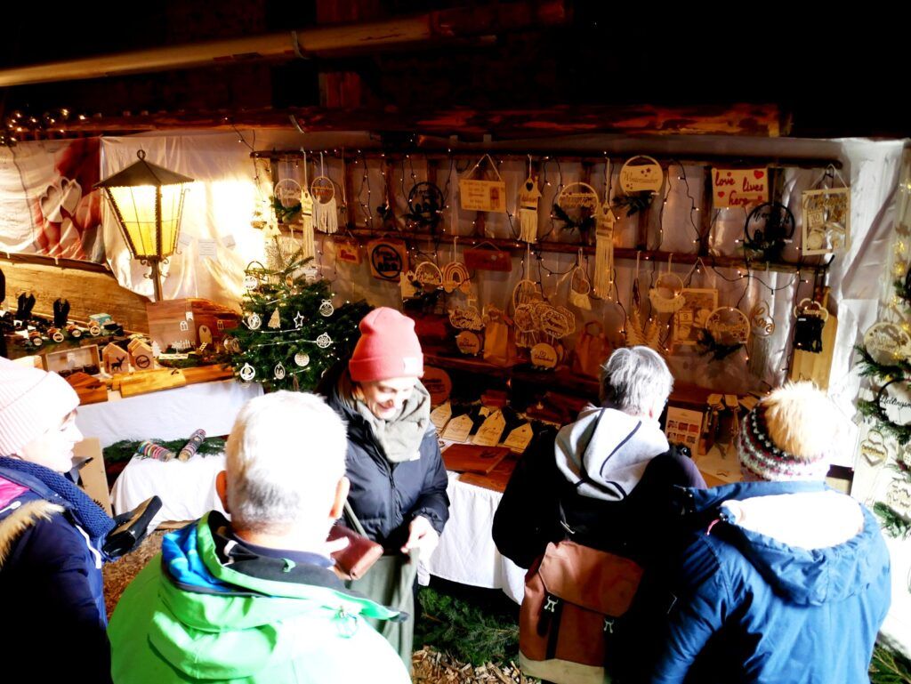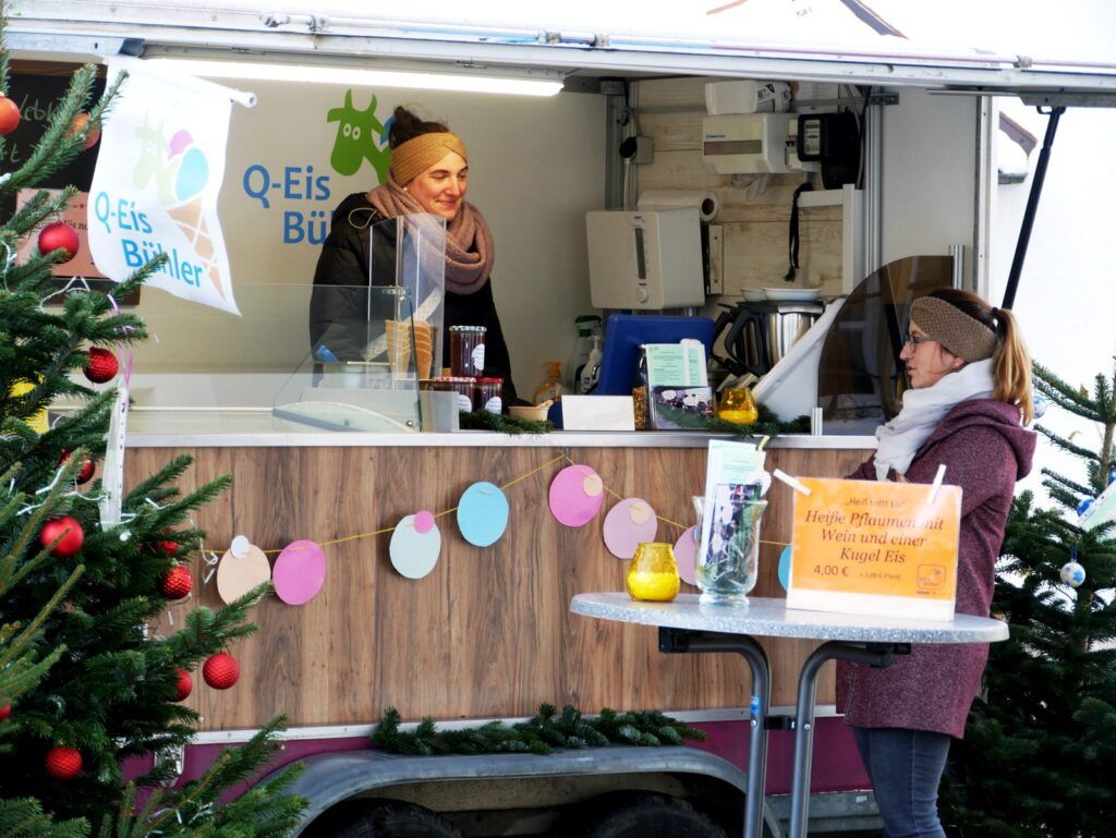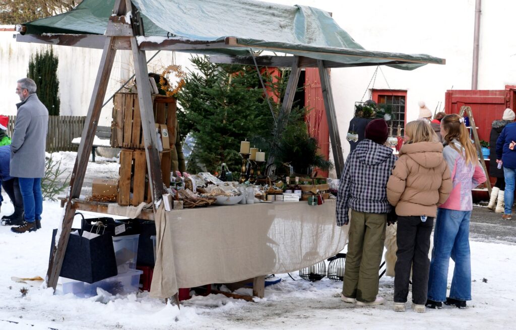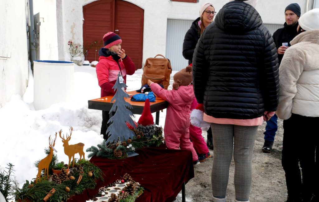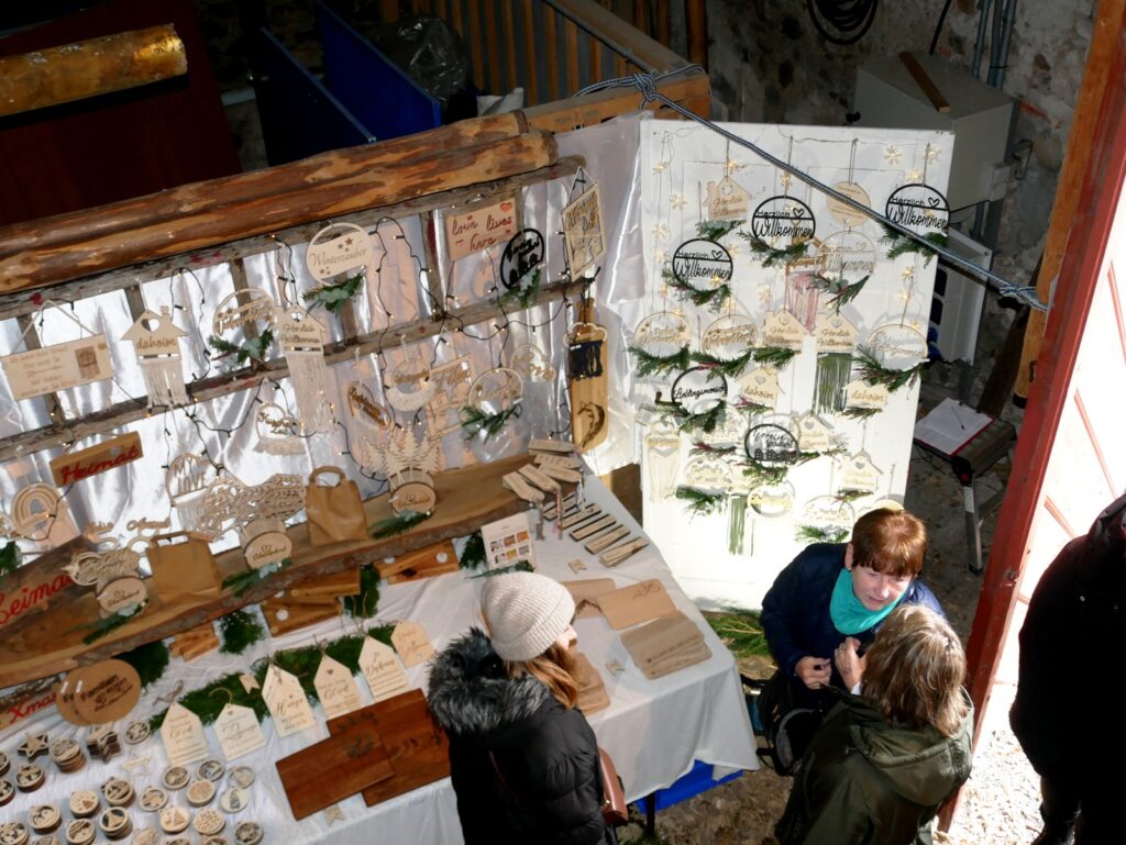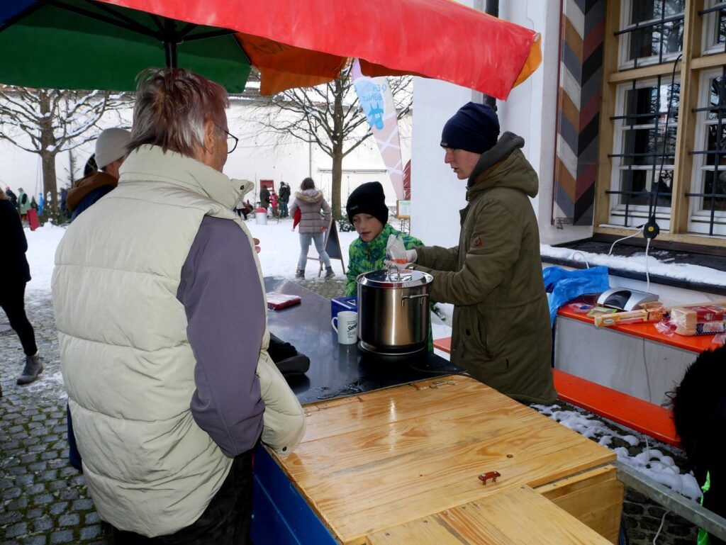 Das kulinarischen Angebot war umfassend und vielfältig. Lange Wartereihen bildeten sich bei den Versorgungsständen. Waffeln, Glühmost und Kinderpunsch gab es bei der Narrenzunft „Waldhex“ .Die Jugendabteilung des Sportvereins fand mit Pommes, Steaks und Würsten sowie Getränken reißenden Absatz. Der Musikverein bot dieses Mal unter den Arkaden heiße Suppen und Glühwein an. Die kulinarischen Feinheiten in Bettina Daibers Essbar und Chocolaterie mit leckeren Suppen, Käse-Angebot sowie die Sekt- und Weinverkostung fanden wie gewohnt besten Zuspruch. Der Förderverein der Grundschule und des Kindergartens bewirtete im Pfarrgemeindesaal. Riesig war hier die von Eltern gespendete Torten- und Kuchenauswahl. Auch die Haisterkircher Ministranten hatten einen Stand aufgebaut und boten besonders für die junge Generation Sandwiches und heißen Kaba an. Stets umlagert war die Versorgungsstation der Rollerfreunde Osterhofen. Dort erfreuten sich vor allem Erwachsene an herzhaften Burger-Angeboten und Drinks. „Brianix-Gins“ mit Glüh-Gin und Gin-Tasting hatte im Freigelände des Klosterhof-Areals eine ganz spezielle Kundschaft gefunden wie auch das Q-Eis von Beate Bühler. Ein Eisangebot vom Feinsten auch an kalten Wintertagen.