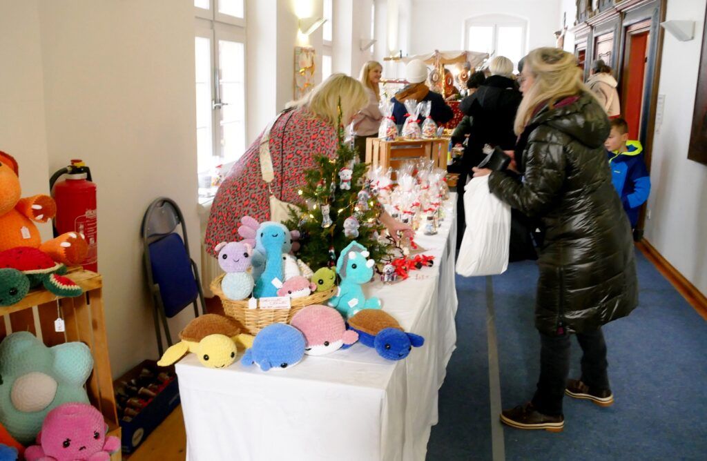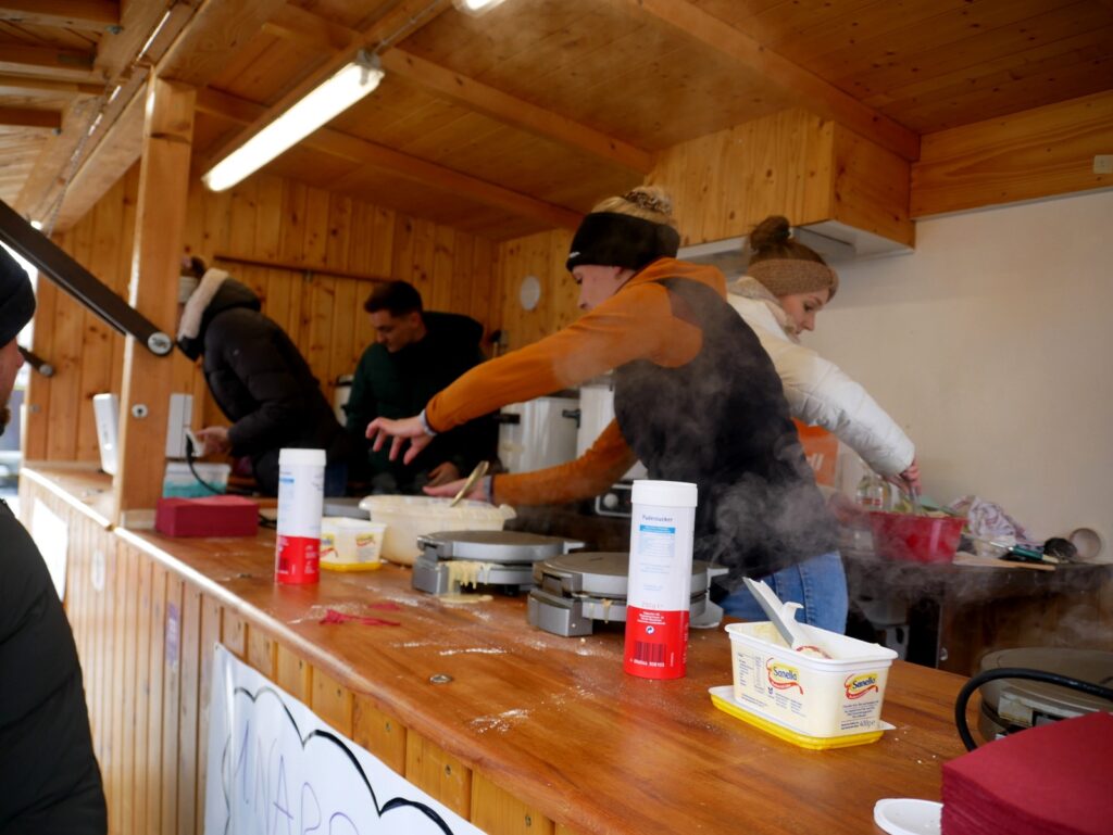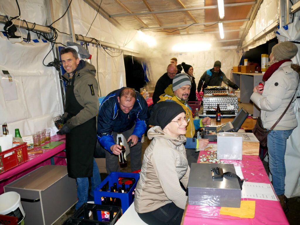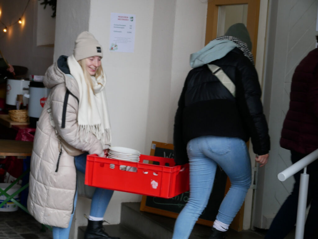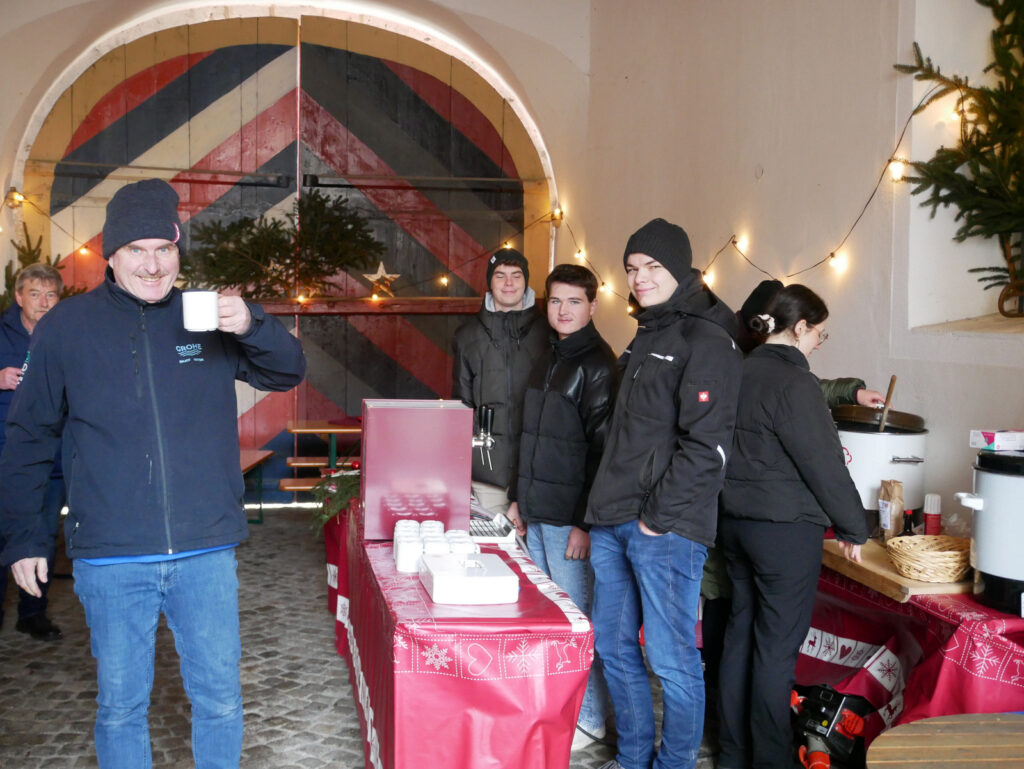 Das kulinarischen Angebot war umfassend und vielfältig. Lange Wartereihen bildeten sich bei den Versorgungsständen. Waffeln, Glühmost und Kinderpunsch gab es bei der Narrenzunft „Waldhex“ .Die Jugendabteilung des Sportvereins fand mit Pommes, Steaks und Würsten sowie Getränken reißenden Absatz. Der Musikverein bot dieses Mal unter den Arkaden heiße Suppen und Glühwein an. Die kulinarischen Feinheiten in Bettina Daibers Essbar und Chocolaterie mit leckeren Suppen, Käse-Angebot sowie die Sekt- und Weinverkostung fanden wie gewohnt besten Zuspruch. Der Förderverein der Grundschule und des Kindergartens bewirtete im Pfarrgemeindesaal. Riesig war hier die von Eltern gespendete Torten- und Kuchenauswahl. Auch die Haisterkircher Ministranten hatten einen Stand aufgebaut und boten besonders für die junge Generation Sandwiches und heißen Kaba an. Stets umlagert war die Versorgungsstation der Rollerfreunde Osterhofen. Dort erfreuten sich vor allem Erwachsene an herzhaften Burger-Angeboten und Drinks. „Brianix-Gins“ mit Glüh-Gin und Gin-Tasting hatte im Freigelände des Klosterhof-Areals eine ganz spezielle Kundschaft gefunden wie auch das Q-Eis von Beate Bühler. Ein Eisangebot vom Feinsten auch an kalten Wintertagen.