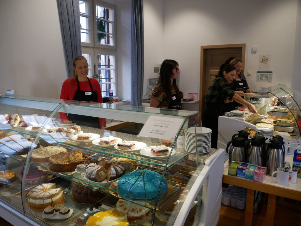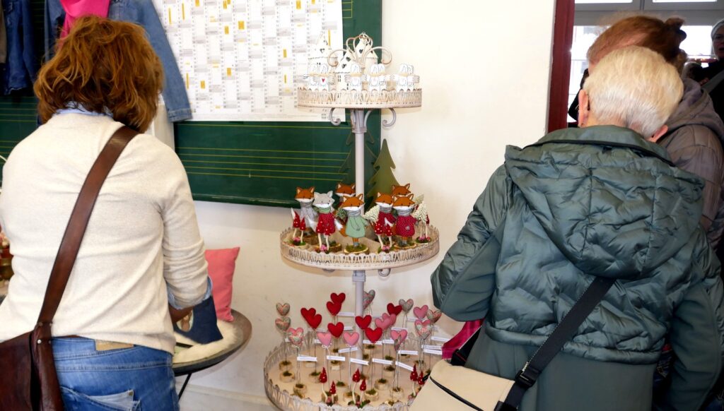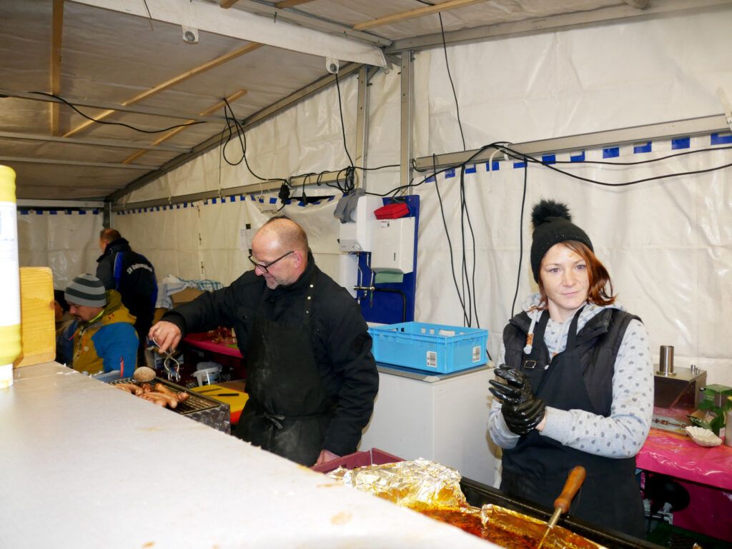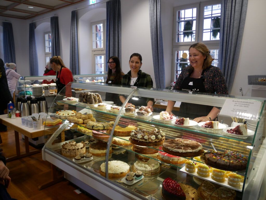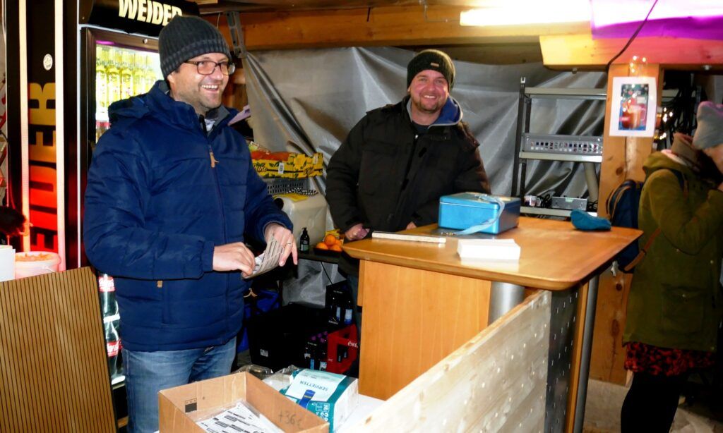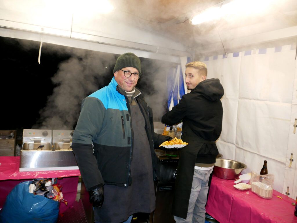 Das kulinarischen Angebot war umfassend und vielfältig. Lange Wartereihen bildeten sich bei den Versorgungsständen. Waffeln, Glühmost und Kinderpunsch gab es bei der Narrenzunft „Waldhex“ .Die Jugendabteilung des Sportvereins fand mit Pommes, Steaks und Würsten sowie Getränken reißenden Absatz. Der Musikverein bot dieses Mal unter den Arkaden heiße Suppen und Glühwein an. Die kulinarischen Feinheiten in Bettina Daibers Essbar und Chocolaterie mit leckeren Suppen, Käse-Angebot sowie die Sekt- und Weinverkostung fanden wie gewohnt besten Zuspruch. Der Förderverein der Grundschule und des Kindergartens bewirtete im Pfarrgemeindesaal. Riesig war hier die von Eltern gespendete Torten- und Kuchenauswahl. Auch die Haisterkircher Ministranten hatten einen Stand aufgebaut und boten besonders für die junge Generation Sandwiches und heißen Kaba an. Stets umlagert war die Versorgungsstation der Rollerfreunde Osterhofen. Dort erfreuten sich vor allem Erwachsene an herzhaften Burger-Angeboten und Drinks. „Brianix-Gins“ mit Glüh-Gin und Gin-Tasting hatte im Freigelände des Klosterhof-Areals eine ganz spezielle Kundschaft gefunden wie auch das Q-Eis von Beate Bühler. Ein Eisangebot vom Feinsten auch an kalten Wintertagen.