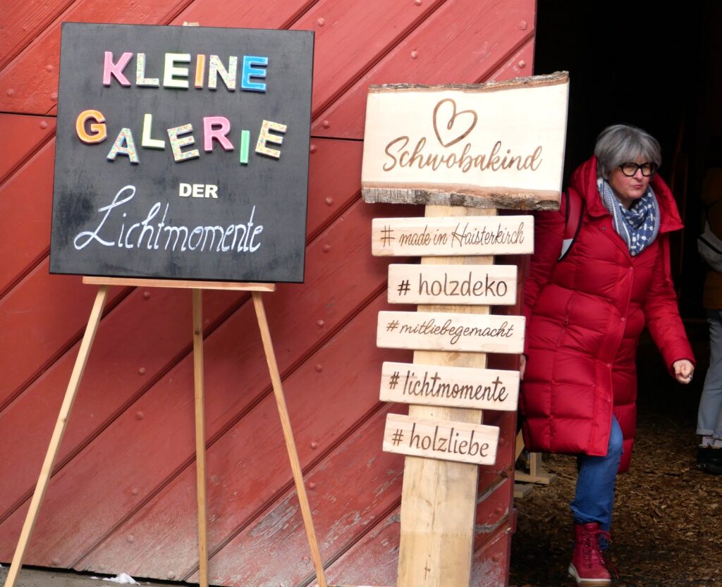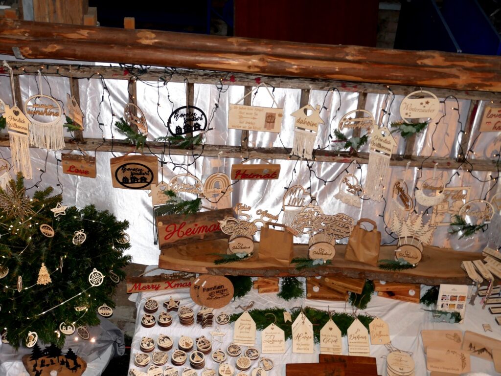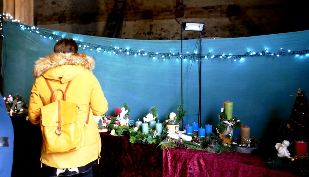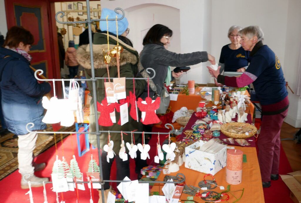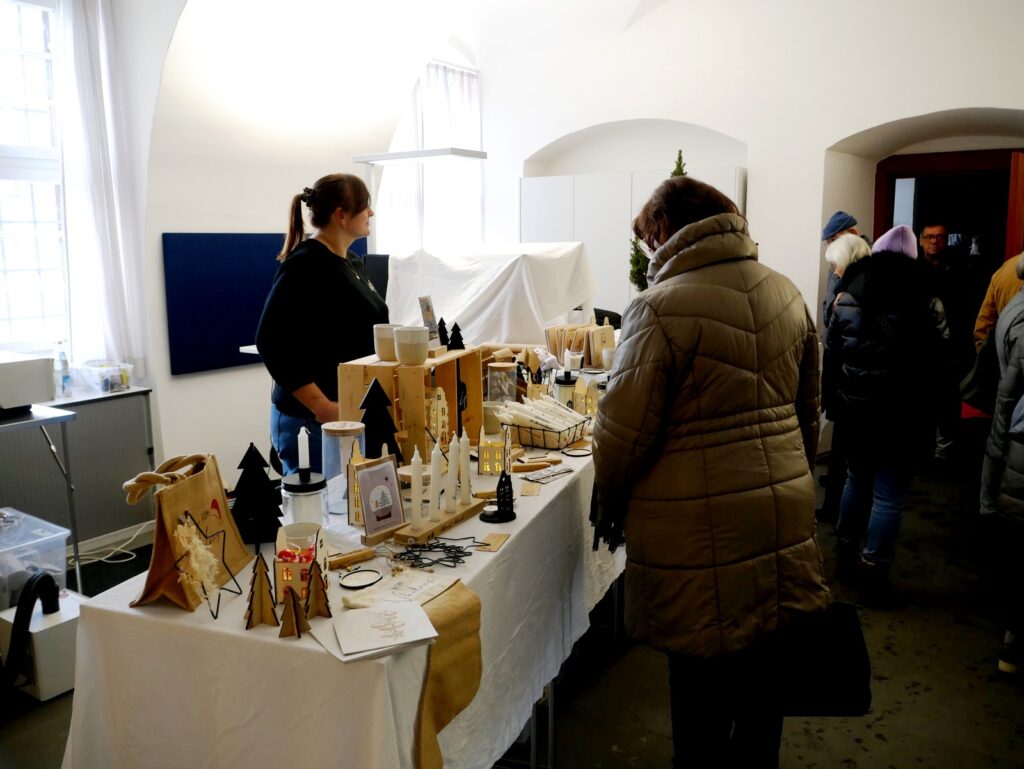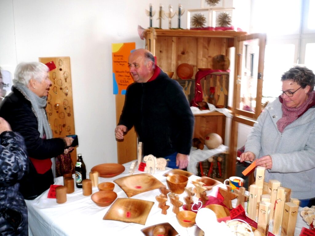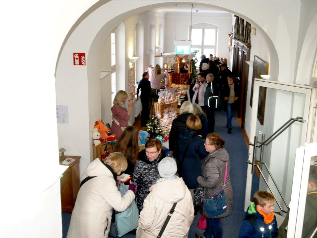 Auch Zelte im Freien waren wieder aufgestellt worden. Der traditionelle Advents- und Kunstmarkt mit Geschenkartikeln aller Art, mit vielen handgefertigten, sehenswerten, filigranen Kunstarbeiten, hat seine große Anziehungskraft behalten. Besondere Erwähnung verdienen jene Aussteller, die ihre Artikel für einen guten Zweck angeboten hatten. Dazu gehörten: „Eine Welt e. V. Weltladen Bad Waldsee, Grundschule Haisterkirch, Christine Mulango-Brillisauer (Hungerhilfe in Afrika), Förderverein Kapelle Osterhofen.