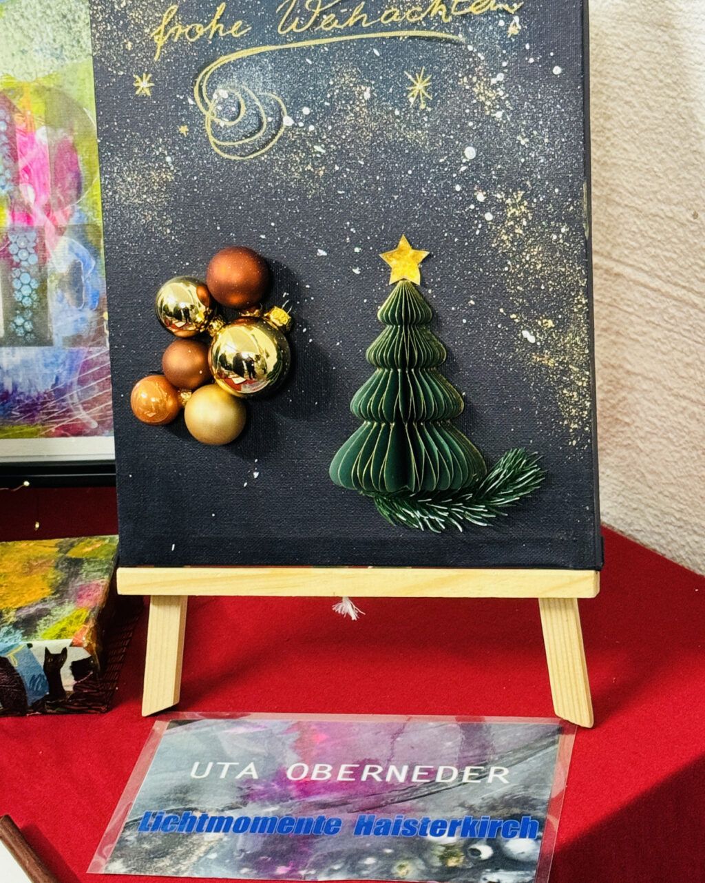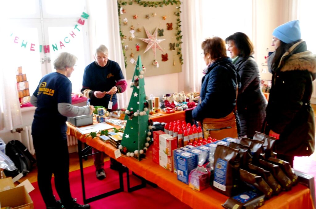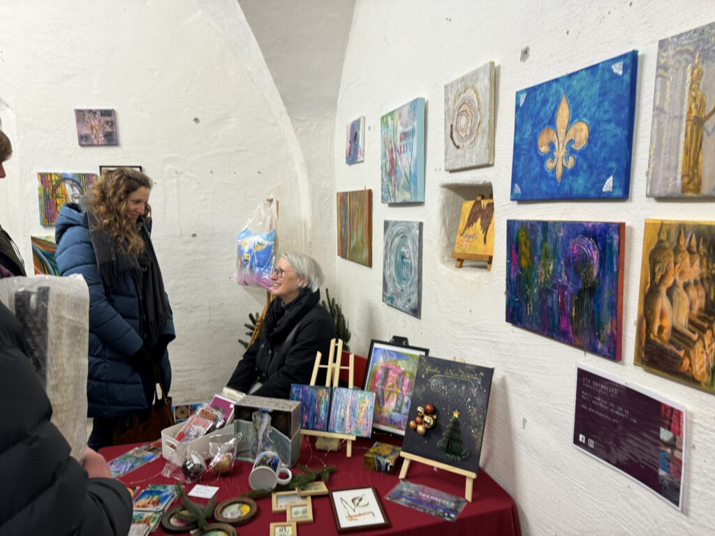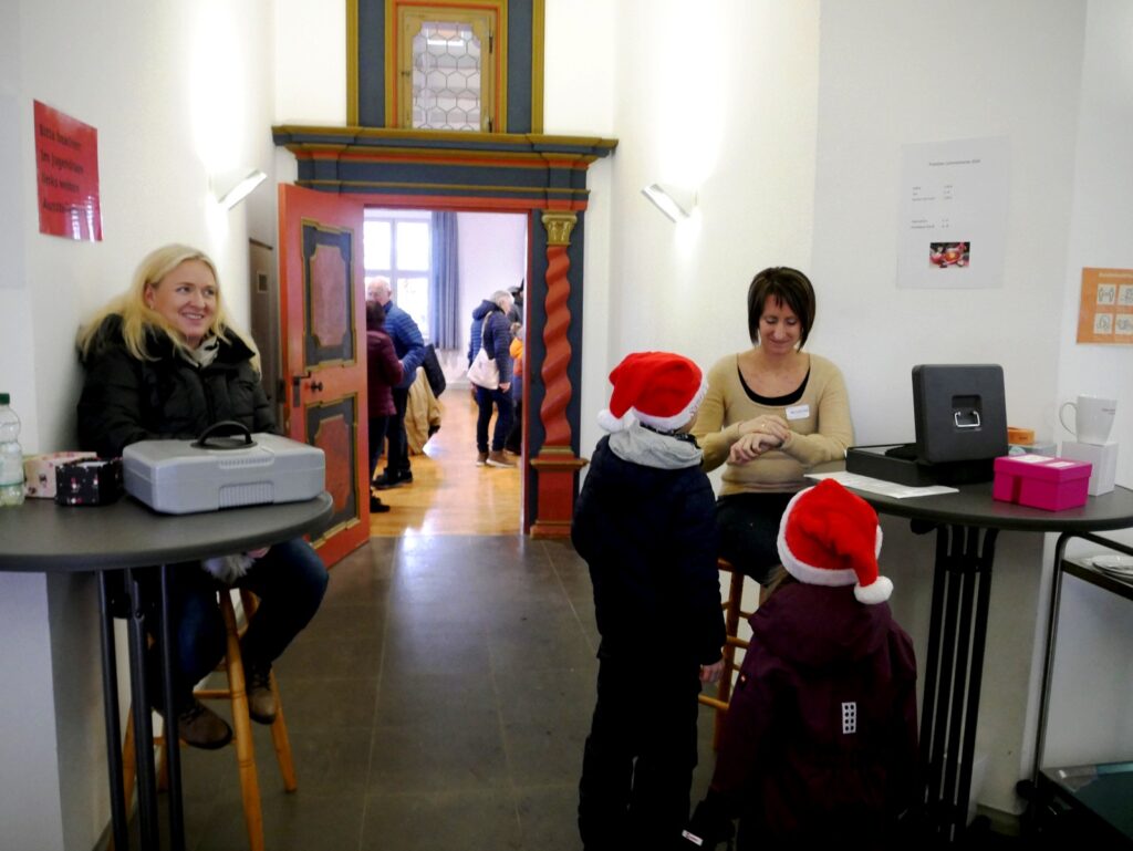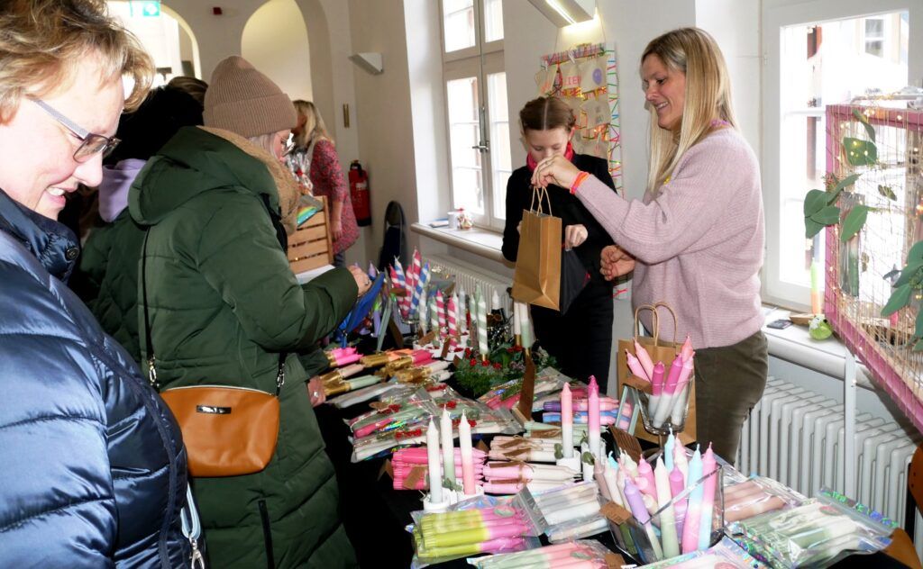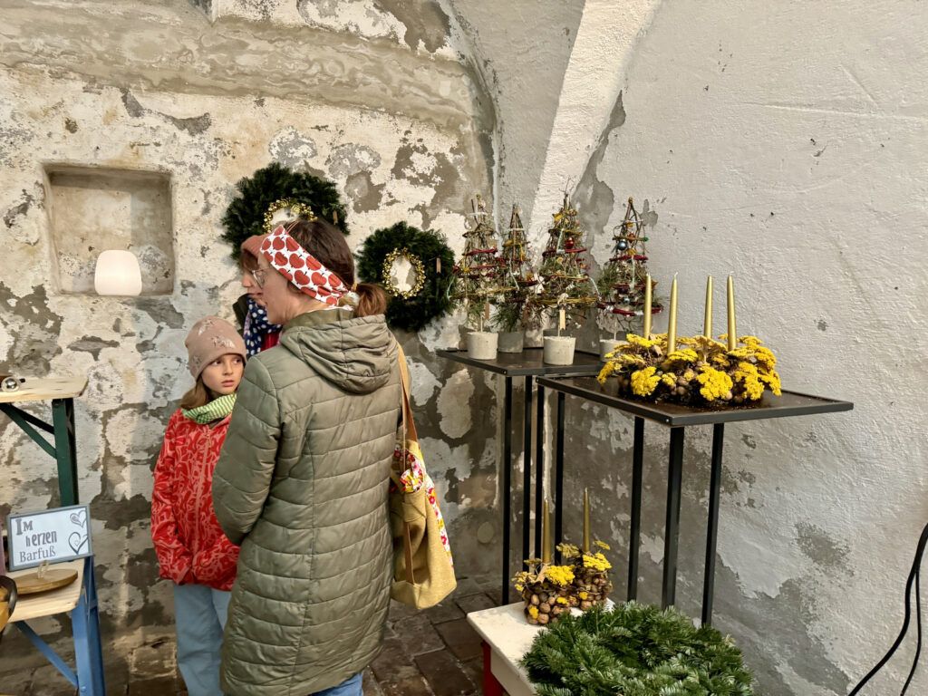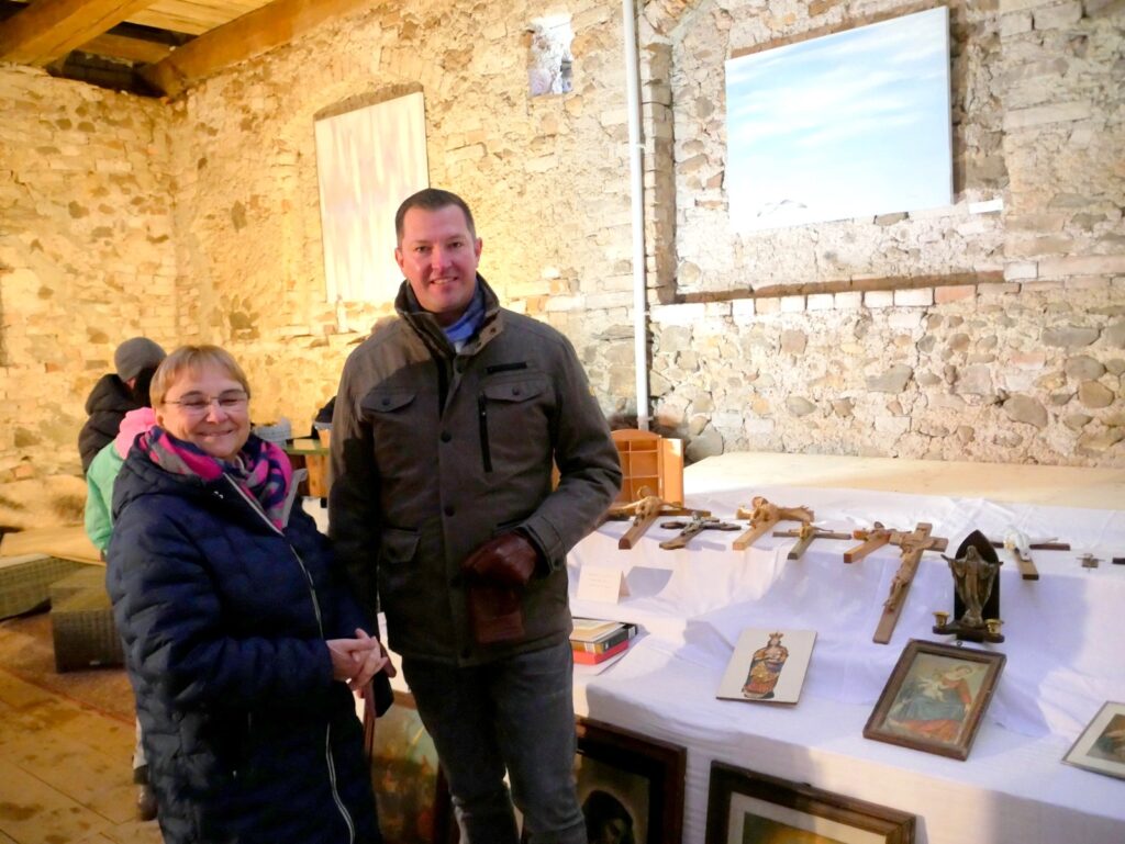 Auch Zelte im Freien waren wieder aufgestellt worden. Der traditionelle Advents- und Kunstmarkt mit Geschenkartikeln aller Art, mit vielen handgefertigten, sehenswerten, filigranen Kunstarbeiten, hat seine große Anziehungskraft behalten. Besondere Erwähnung verdienen jene Aussteller, die ihre Artikel für einen guten Zweck angeboten hatten. Dazu gehörten: „Eine Welt e. V. Weltladen Bad Waldsee, Grundschule Haisterkirch, Christine Mulango-Brillisauer (Hungerhilfe in Afrika), Förderverein Kapelle Osterhofen.