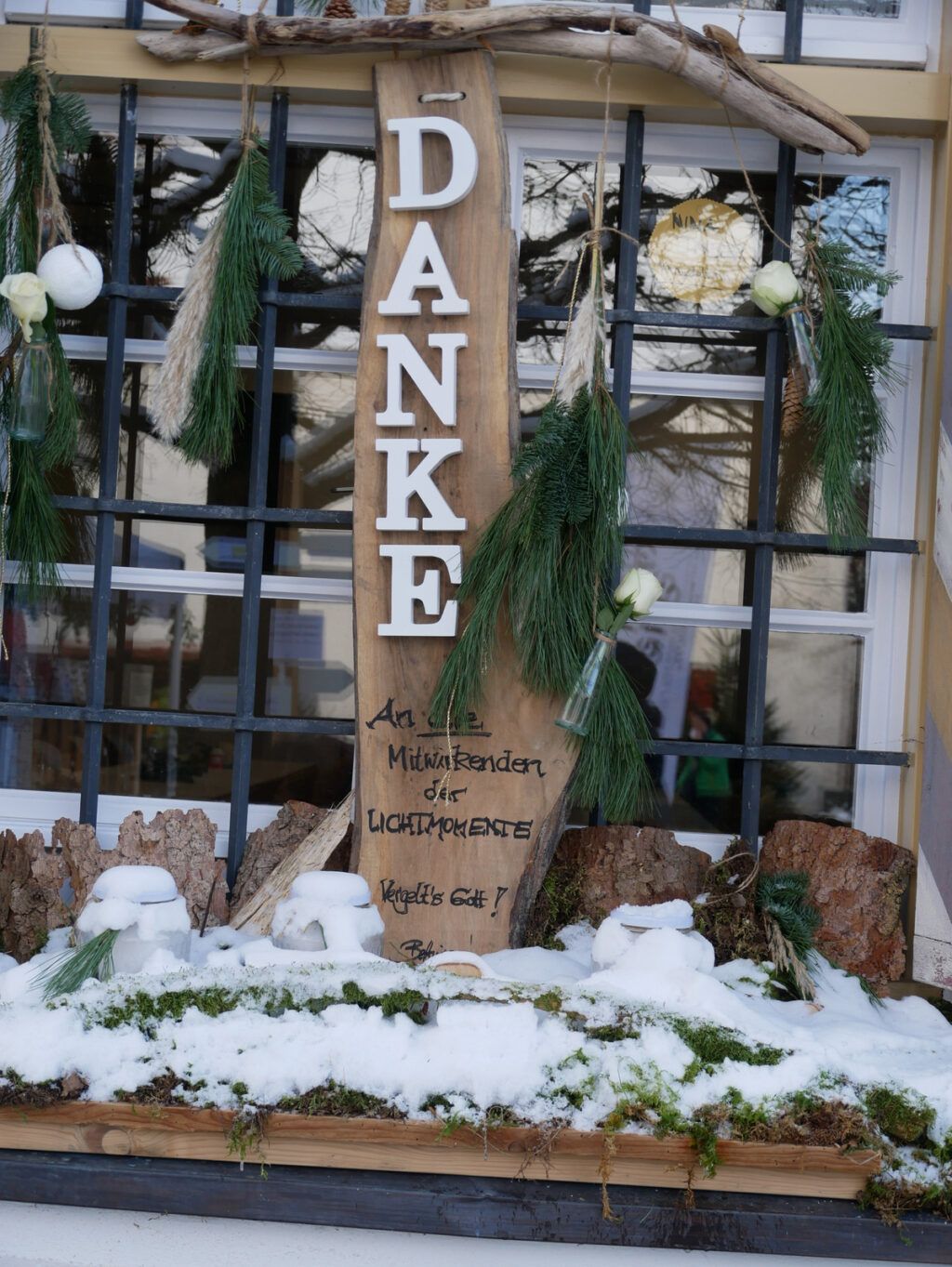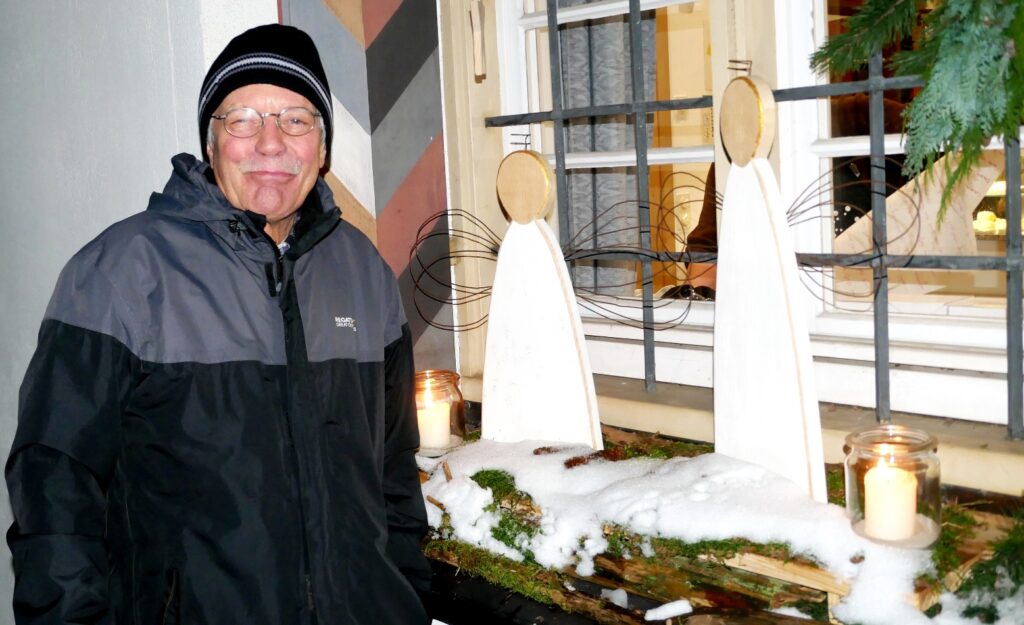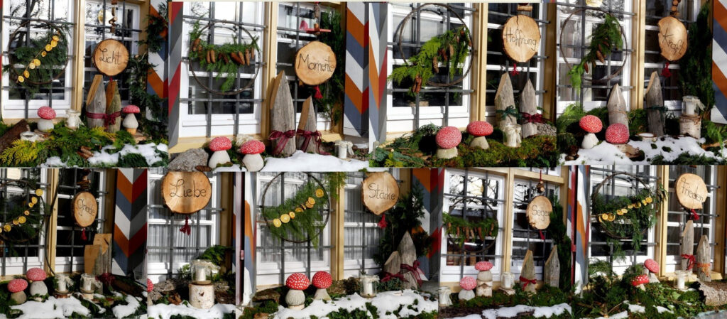 Vor allem erwähnt sei das Engagement der Landfrauen Haisterkirch-Mittelurbach, denn sie hatten die gesamten unteren neun Fensteranlagen der Vorderfront des Klosterhofs wieder passend zur vorweihnachtlichen Zeit wundervoll geschmückt. (siehe dazu Collage). Dass dieses Dorfereignis „Lichtmomente“ nach Idee und Management durch Bettina Daiber so ein Renner geworden ist, verdankt man im Wesentlichen auch dem Team der Ortschaftsverwaltung mit Ortsvorsteher Matthias Covic an der Spitze und in all den Jahren zuvor auch der bisherigen Ortsvorsteherin Rosa Eisele. Ihnen war es gelungen, wieder zahlreiche Vereine und Gruppierungen der Ortschaft zur ehrenamtlichen Mitarbeit zu animieren.