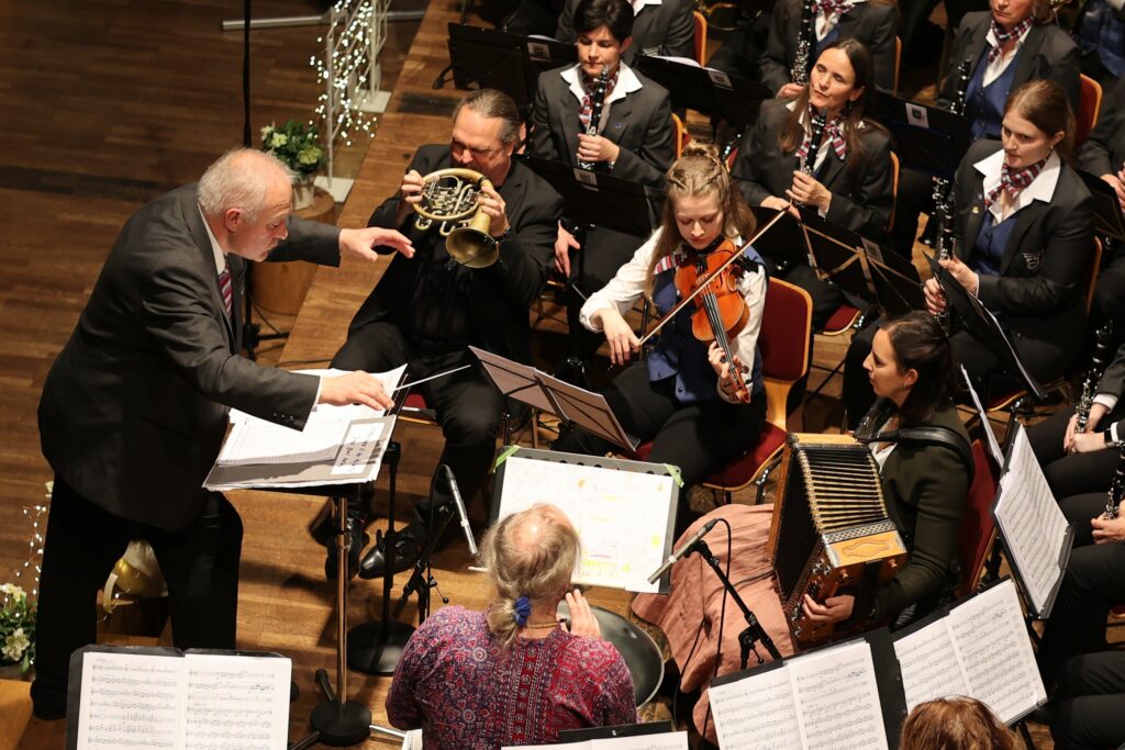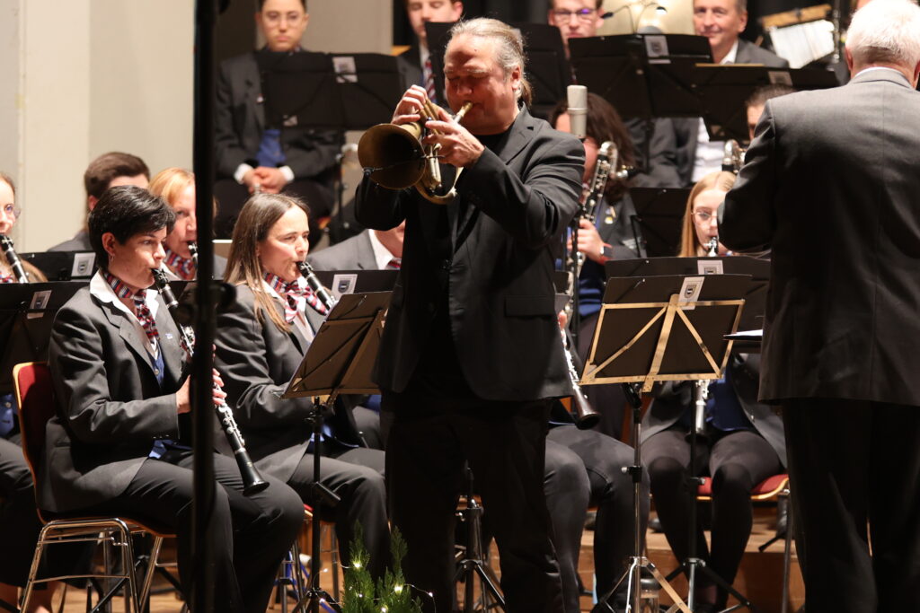 Beeindruckend war die Leistung der Solisten Michael T. Otto (Flügelhorn), Anna Rädler (Steirische Harmonika), Carolin Winkel (Violine), Jakob Nold (Saxophon) und Karl Schneider (Flügelhorn).