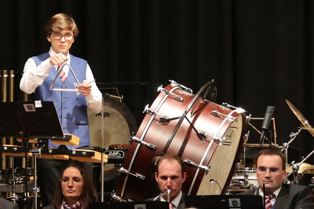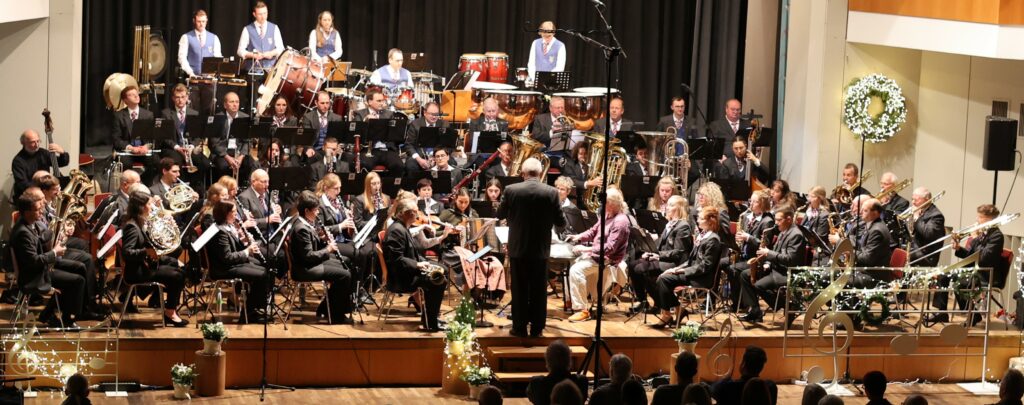 Das Konzert begann schwungvoll mit „In the Name of Her Majesty“, einem mitreißenden Medley aus James-Bond-Filmen. Unter der Leitung von Joachim Weiss bewies das Orchester seine Präzision und Musikalität. Die sechs Schlagzeuger setzten rhythmische Akzente, unterstützt von synkopischen Sforzati und überraschenden Einwürfen der Trompeten und Posaunen, die die packenden Übergänge meisterhaft gestalteten.
