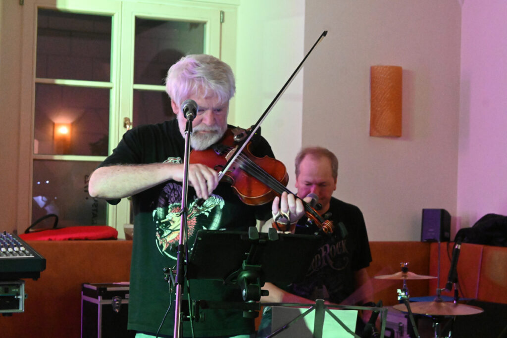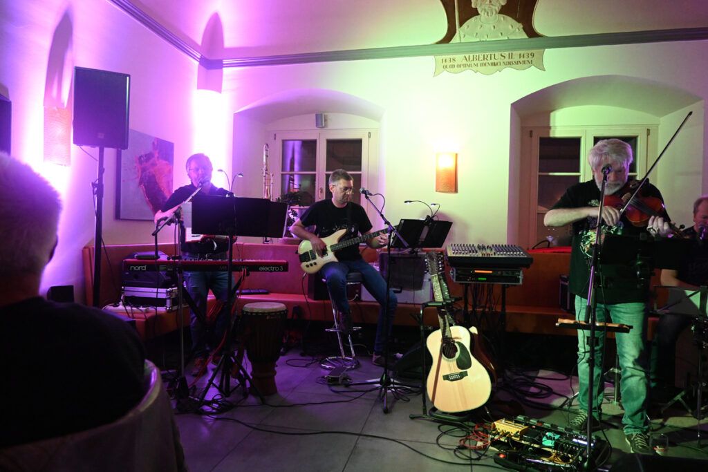 Unplaqueded Prochecked hatten in den Ratskeller eine Fidel und ein Akkordeon mitgebracht und machten damit auch einen feinen irischen Sound. Die fünf Musiker brachten die schönsten Rock- und Popsongs der letzten Jahrzehnte sowie eigene Titel zum Klingen. Bei den fünf Musikern, alle schon im guten Schwabenalter, spürt man den Spaß und der Funke springt sofort über zum Publikum. Pure Spiellaune und eine Vielzahl von akustischen Instrumenten sind die Markenzeichen der Band.