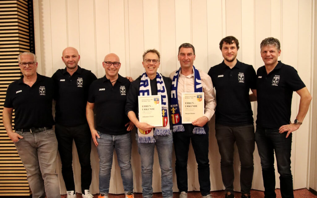 Der 2.Vorsitzende Martin Lorinser übergab Ehrenurkunden und Fanschals an Johannes Frick und Jürgen Knaus, die den SVR-Fußballern seit 50 Jahren die Treue halten und nach ihrer Aktivenkarriere auch lange Jahre Funktionärsämter innehatten. Kleine Präsente gab’s schließlich noch als Dank für ihren Einsatz an Norbert Kärcher, Roland Obermayer, Christian Spieler und Lukas Eisele.