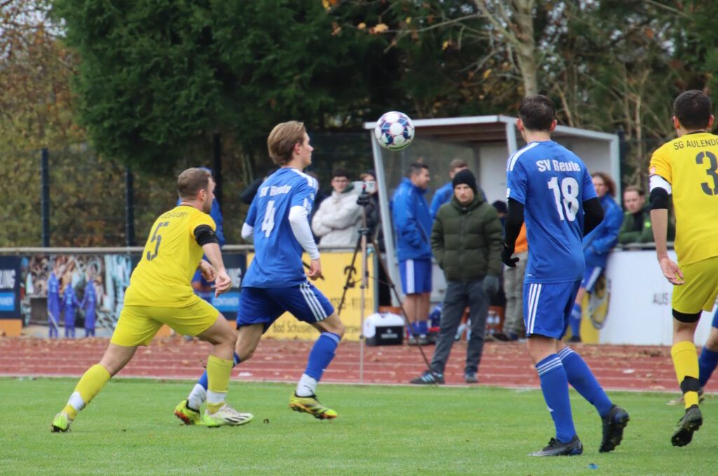 Ein sehr couragierter Auftritt des SV Reute beim Derby in Aulendorf wurde am Ende nicht belohnt und nach zweimaligem Ausgleich kassierten die Gäste in der dritten Minute der Nachspielzeit den Gegentreffer zur 3:2-Niederlage.