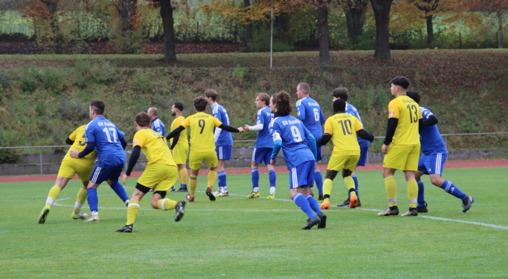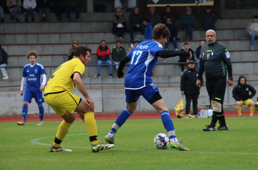Die ersatzgeschwächten Gäste starteten gut in das Nachbarschaftsduell, kassierten aber dennoch bereits in der fünften Spielminuten den frühen Gegentreffer zum 1:0. Nach einem Ballverlust ging’s schnell und Andreas Maucher verwandelte frei vor der Kiste eiskalt zum 1:0. Reute steckte den Rückstand aber gut weg und kam eine Viertelstunde später zum verdienten Ausgleich. Kevin Kraus spielte ideal in die Gasse und Furkan Bastan schloss trocken zum umjubelten 1:1 ab. Pech hatte der Gastgeber nur wenig später, als Andreas Krenzler einen Kopfball wuchtig ans Reutener Gebälk setzte. Kurz vor dem Pausenpfiff bot sich SVR-Spielführer Niklas Klawitter eine gute Gelegenheit, doch der Freistoß wurde vom Keeper zur Ecke geklärt.