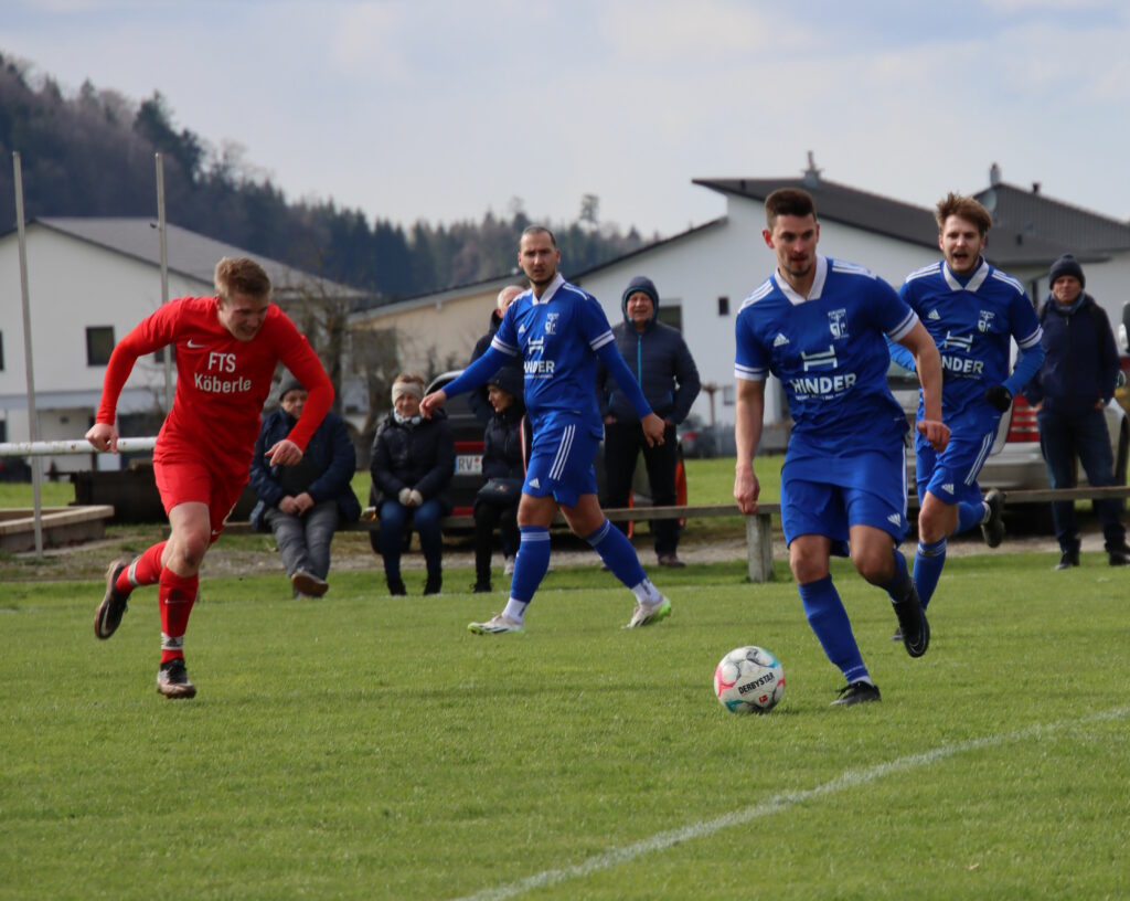 Für viele aus dem Gästekader war es der erste Auftritt überhaupt auf dem Fleischwangener Sportgelände und die Gäste waren angesichts der letzten Ergebnisse des Tabellenvorletzten gewarnt. Gegen den böigen Wind fanden die Hausherren von Beginn an das geeignete Mittel und kauften den Gäste schnell den Schneid ab. Einen ersten Weckruf gab es nach knapp einer Viertelstunde, als ein Distanzschuss mit Windunterstützung an die Reutener Torlatte klatschte. Wenig später kam Patrick Bentele zur ersten Gästechance, doch sein Kopfball am langen Pfosten nach einer Ecke verfehlte das gegnerische Gehäuse. Mit einem spektakulären Treffer aus gut 30 Meter Torentfernung ging die SGM in Front.