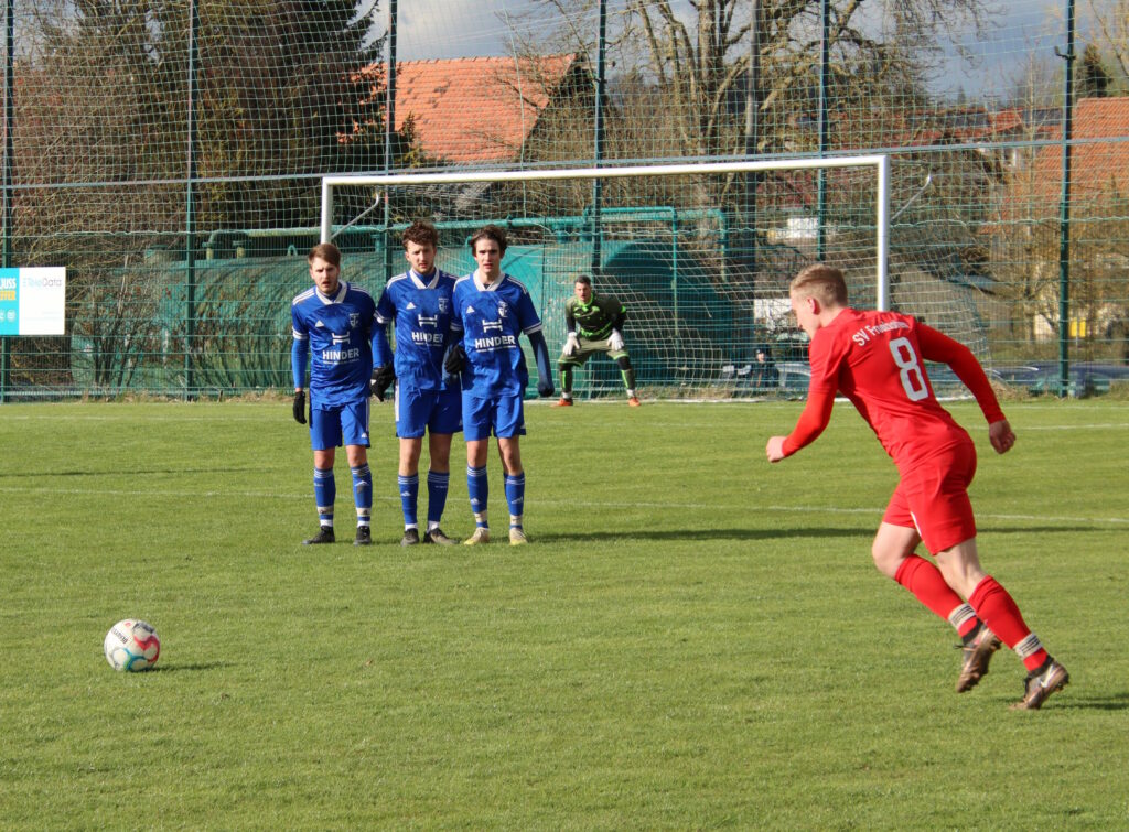 Ob eher Flanke oder Torschuss war dem Schützen letztlich egal, unverdient war der Führungstreffer für die stark kämpfenden Gastgebern keineswegs. Dennis Fundel hatte nur sechs Minuten später den Ausgleich auf dem Schlappen, doch sein Freistoß spitzelte der Keeper noch um den linken Torpfosten. Den anschließenden Eckball setzte Maximilian Heß sehenswert mit Windunterstützung zum 1:1 ins Netz. Lange konnten sich die Gästefans darüber nicht freuen, wenige Minuten später gab’s Foulelfmeter für die SGM. Philip Schweizer verwandelte sicher zur 2:1-Halbzeitführung.
