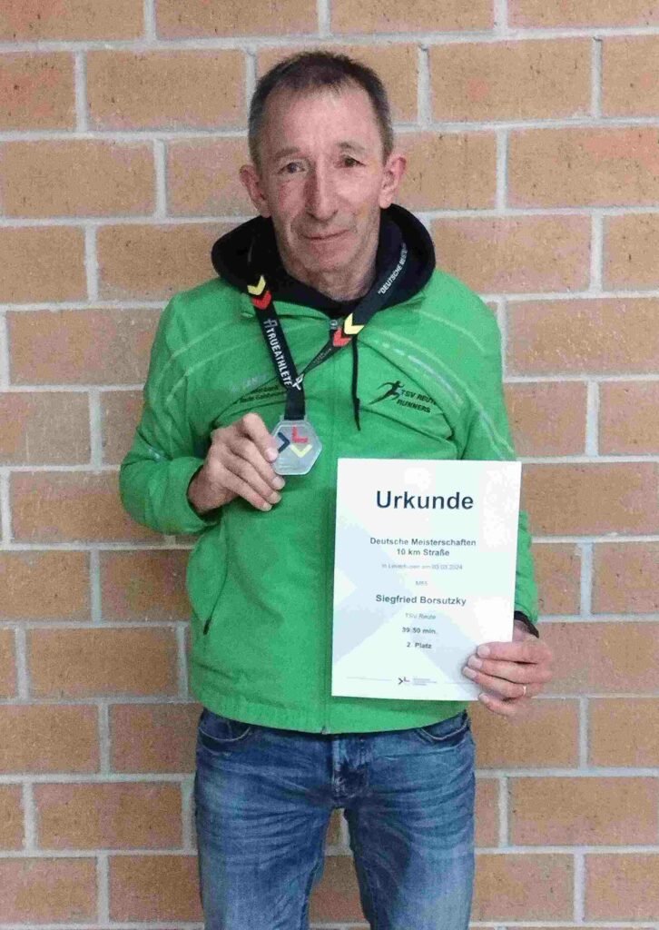 Siegfried Borsutzky vom TSV Reute wird deutscher Vizemeister im 10-KM Straßenlauf