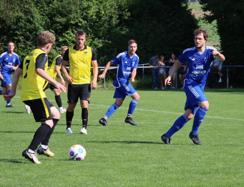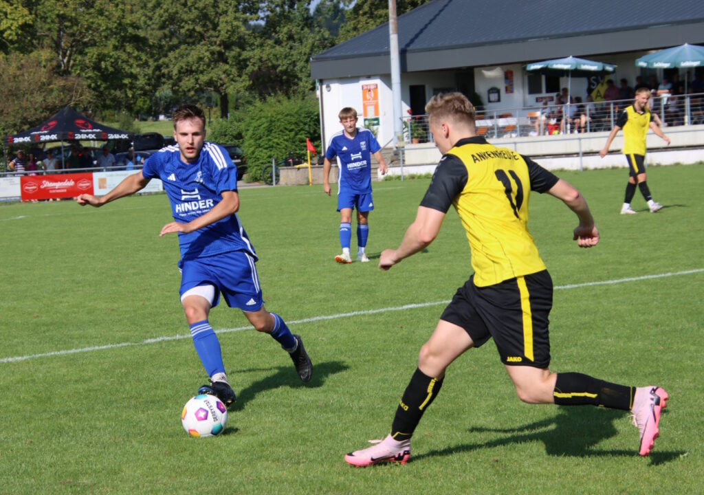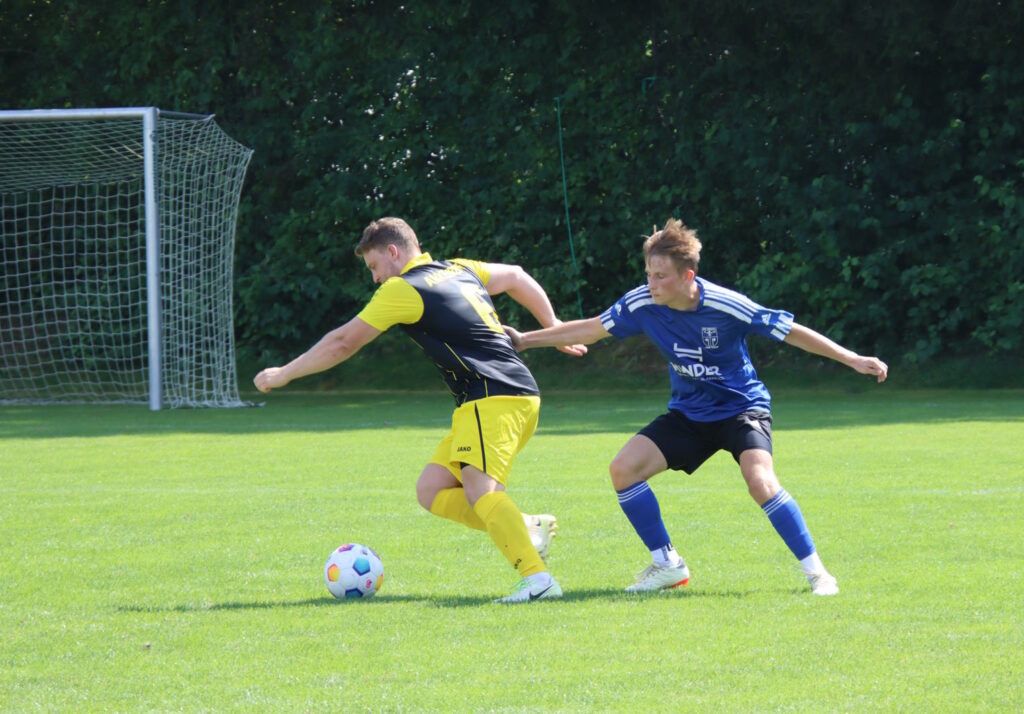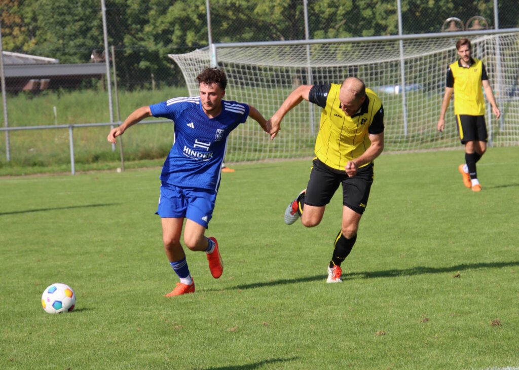 Bei hohen Temperaturen legten die Gäste los wie die Feuerwehr und führten nach fünf Minuten bereits mit 3:0-Toren. Tim Geßler eröffnete den Torreigen in der ersten Spielminute mit seinem ersten Treffer im Aktivenbereich überhaupt und was für ein schöner – gekonnt schlenzte er das Ding aus 20 Meter rechts ins Tor. Wenig später lief Niklas Maucher rechts durch, seine Hereingabe bugsierte Julian Neyer zum 0:2 ins Tor. Identische Spielsituation nur eine Minute später, dieses Mal traf erneut Tim Geßler nach der Hereingabe von Niklas Maucher und schraubte den Spielstand auf 0:3. Doch dann ließ man die Gastgeber mehr und mehr ins Spiel kommen und kassierte nach einer Viertelstunde prompt den Anschlusstreffer. Es entwickelte sich nun ein intensives Spiel und Tim Geßler verpasste nach einer halben Stunde den Hattrick, als er nach einem Solo den Ball hauchdünn am Ankenreuter Tor vorbeisetzte. Fünf Minuten später gelang den Hausherren nach einem Eckball das 2:3. Doch Reute schlug postwendend zurück, als Leon Schirmer eine Vorlage von Tim Geßler zum vierten Reutener Treffer versenkte. Mit diesem Spielstand ging es in die wohlverdiente Halbzeitpause.