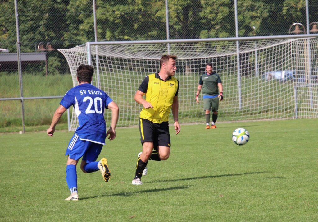 Bereits vor Spielbeginn drückte den Gästen offensiv der Schuh, standen doch mit Kevin Kraus und Furkan Bastan gleich zwei etatmäßige Stürmer nicht zur Verfügung. Durch zwei Standardsituationen geriet der SVR nach knapp einer Viertelstunde bereits mit 2:0 in Rückstand. Einmal Ecke von rechts, kurz darauf Ecke von links – beides Mal nickte Patrick Padberg schulbuchmäßig ein, der gefühlt in seiner Etage die volle Lufthoheit hatte. Nach zwanzig Minuten hatte Reute gleich zweimal die Gelegenheit auf den Anschlusstreffer, verpasste aber jeweils knapp. Der SVR schien jetzt die beiden Gegentreffer verdaut zu haben und in der Partie angekommen zu sein. Doch nach der ersten Trinkpause nahm die Passivität auf Reutener Seite wieder zu und Ankenreute konnte auf 3:0 erhöhen, nachdem SVR-Keeper Daniel Briegel zunächst noch glänzend parieren konnte. In der Nachspielzeit traf dann auch noch Torjäger Luca Rief, der Treffer zum 4:0-Halbzeitstand wurde trotz großer Abseits-Proteste vom Unparteiischen anerkannt.