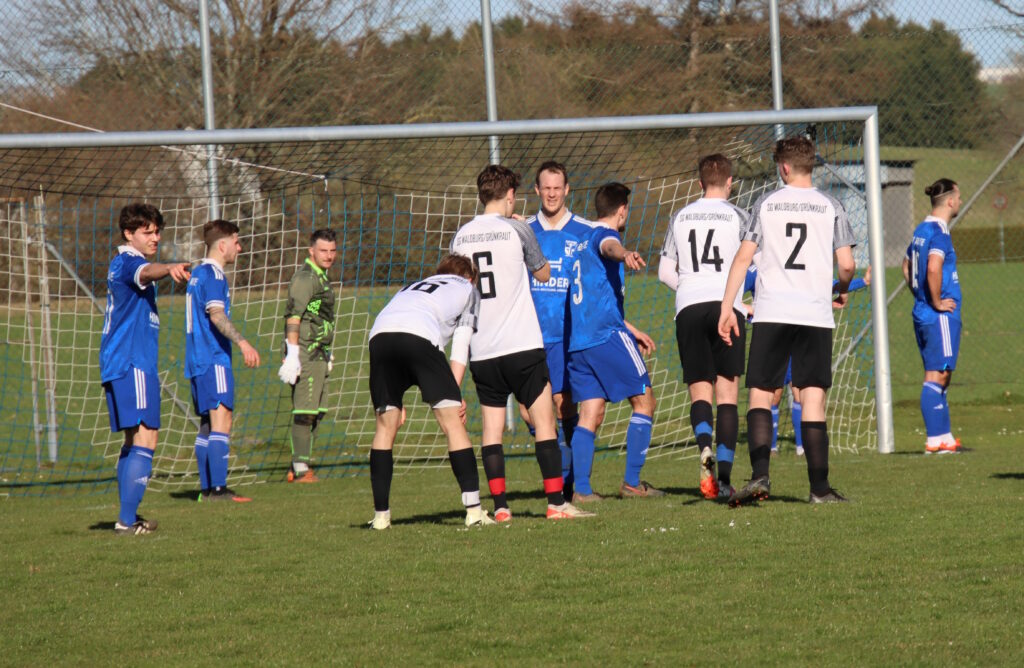 In der Nachholpartie gegen Waldburg/Grünkraut musste SVR-Trainer Jonas Klawitter unter anderem auf die Stammkräfte Johannes Freßle, Niklas Klawitter, Johann Decker und Abdel Rahman Denoun verzichten, zu allem Überfluss musste dann auch noch Daniel Rudolph kurz vor Spielbeginn verletzungsbedingt passen. Dafür feierte A-Junior Tobias Kasper sein Debüt bei der Reutener Ersten direkt in der Startelf. Auch der langjährige Torhüter Kevin Kraus gab sein Punktspieldebüt im Trikot des SV Reute, nun jedoch in neuer Position in der Sturmspitze. Nach zunächst gutem Start in die Partie verlor der Gastgeber im ersten Spielabschnitt immer mehr den Faden und die Gäste bekamen Übergewicht. Zunächst verfehlten die Abschlüsse noch das Reutener Tor, doch kurz vor der Halbzeit kassierte der SVR doch den Treffer zum 0:1-Pausenrückstand. Noel Müller bekam lediglich Geleitschutz und konnte nach einem schönen Solo die Gästeführung markieren. Die Pausenführung für die Gäste ging in Ordnung, von den Hausherren kam einfach zu wenig.