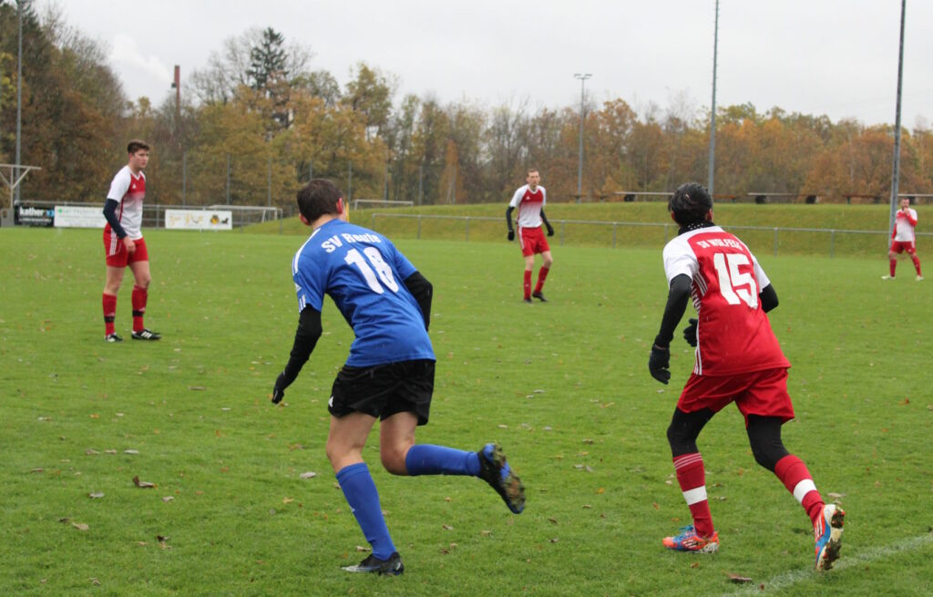 Sechs Siege in Folge verzeichnete Wolfegg vor der Begegnung gegen den SV Reute und wollte als Tabellenführer gegen die ersatzgeschwächten Gäste mit einem weiteren Dreier nachlegen. Doch wie schon vor kurzem gegen Bergatreute traten die Gäste um SVR-Spielertrainer Jonas Klawitter sehr diszipliniert auf und Torchancen waren im ersten Durchgang bei miesem Fritz-Walter-Wetter Mangelware. Die Reutener Hintermannschaft machte einen sehr soliden Eindruck, bei einer guten Chance für Wolfegg zeigte sich Keeper Daniel Briegel auf dem Posten. Nach dem Seitenwechsel kam mehr Tempo ins Spiel und die Gäste wurden nun immer mutiger. Aus einer gefährlichen Freistoßsituation heraus entstand schließlich der Führungstreffer für die Gäste. Maximilian Heß trat einen Freistoß in den gegnerischen Strafraum, wo dieser an die Hand eines Wolfeggers sprang. Den fälligen Handelfmeter verwandelte Spielführer Niklas Klawitter sicher zum 0:1. Wolfegg verstärkte nun die Offensive und drängte auf den Ausgleich, am Reutener Keeper Daniel Briegel war an diesem Tage aber kein Vorbeikommmen. Eng wurde es dann nochmals in der Schlussphase, als Johannes Freßle nach einem Foulspiel vom Feld musste – er hatte sich bei einem Zweikampf verschätzt und war schlicht zu spät gekommen. Mit vereinten Kräften brachten die Gäste den Vorsprung aber auch über eine fünfminütige Nachspielzeit und konnten somit einen sehr wichtigen Auswärtsdreier beim bisherigen Tabellenführer feiern.