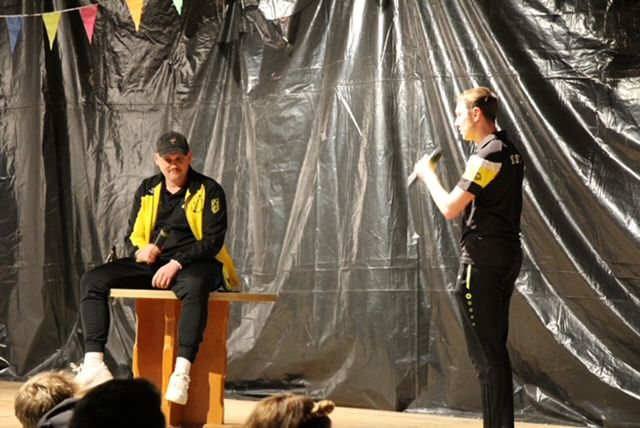 Bereits zum dritten Mal in Folge führten die beiden Moderatoren Alexander „Wiese“ Wiest und Michael „Mike“ Romer mit viel Witz und Charme durch das Programm. Sie traten erneut in verschiedenen Rollen und als dorfbekannte Charaktere auf, um auf humorvolle Weise über das Vereins- und Dorfgeschehen des vergangenen Jahres zu berichten. Ob Yoga, Photovoltaikanlagen, Feuerwehrhaus, die Ortschaftsratswahl, Glasfaser oder der Waldseer Krimi „Kurschatten“ – kaum ein Thema blieb an diesem Abend unbehandelt.