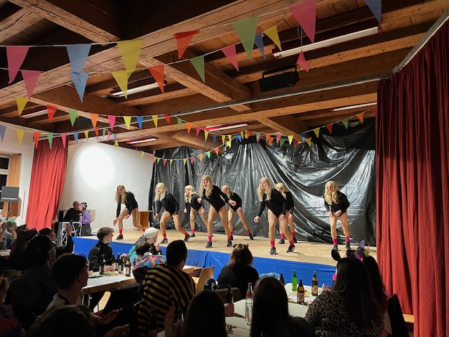 Nach der Pause, in der die Gäste bestens versorgt wurden, heizte die LK Leupolz die Stimmung erneut ordentlich an. Kaum jemand konnte noch auf seinem Stuhl sitzen bleiben; es wurde kräftig geklatscht, geschunkelt und sogar auf den Stühlen getanzt. Weiter ging es mit der AH, die in einer humorvollen Darstellung eine Therapiesitzung der Wochentage abhielt. Mit einer sportlichen Choreografie in Latzhosen setzte „Fit for Fun“ ein weiteres Highlight. Abgerundet wurde das Programm durch das Moderationsteam, das als „Siegfried & Joy“ mit Zaubertricks für Staunen sorgte, sowie durch die aktive Mannschaft, die auf humorvolle Weise über aktuelle Themen aus der Mannschaft berichtete. Für einen besonderen Höhepunkt sorgte das „Trainer-Casting“, bei dem am Ende das Publikum aktiv mit abstimmen konnte. Zum großen Finale wurden unter tosendem Applaus alle Akteure noch einmal auf die Bühne geholt und gebührend gefeiert. Im Anschluss sorgte DJ Artur mit durchgehend guter Stimmung und Partybeleuchtung für einen schönen Abend und lockte die Gäste auf die Tanzfläche.