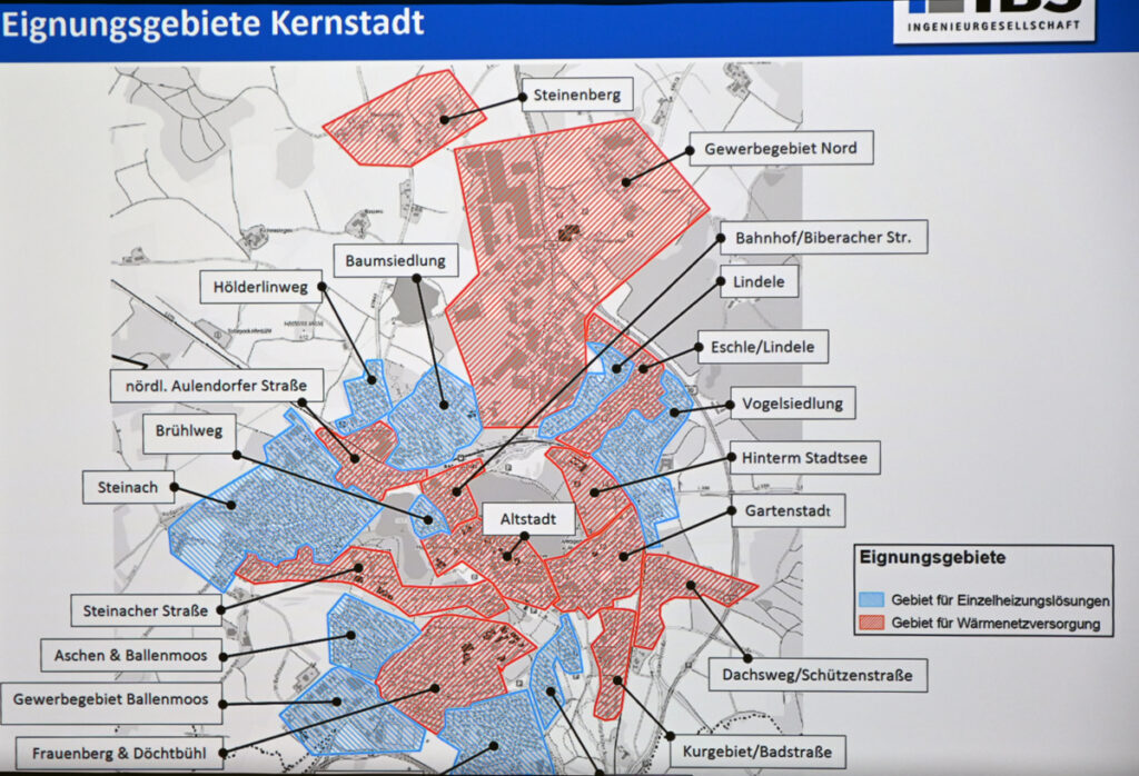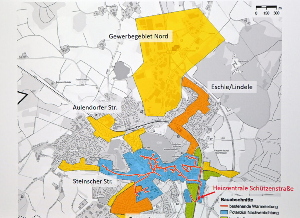 Nach einer „hausgenauen“ Wärmebedarfsermittlung und einer Potenzialanalyse zur Wärmeerzeugung im Stadtgebiet ergibt sich nach den Erhebungen des Ingenieurbüros ein ungefährer Plan von Stadteilen, die in absehbarer Zeit wirtschaftlich an ein Nahwärmenetz angeschlossen werden können und von solchen, die weiterhin auf Einzelheizungen angewiesen sind.