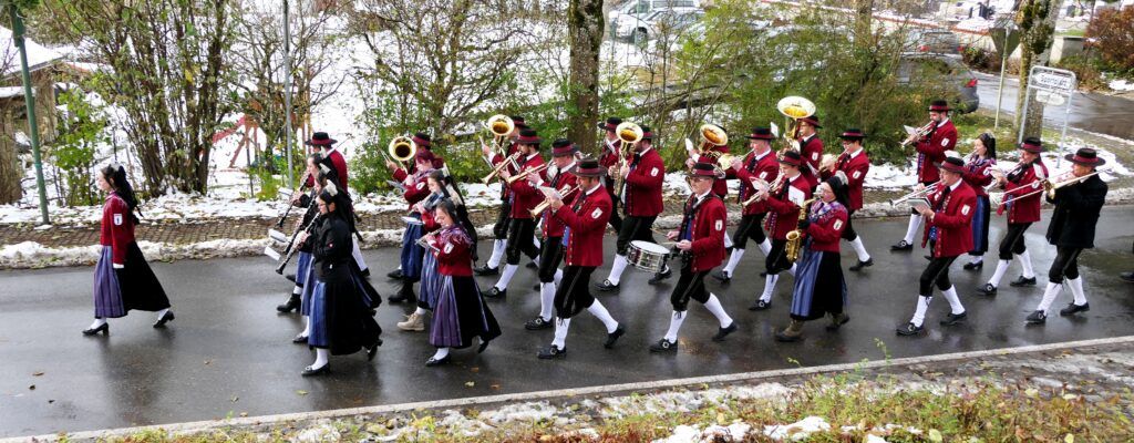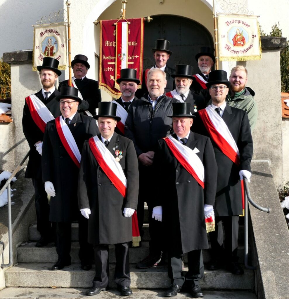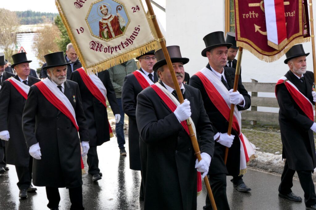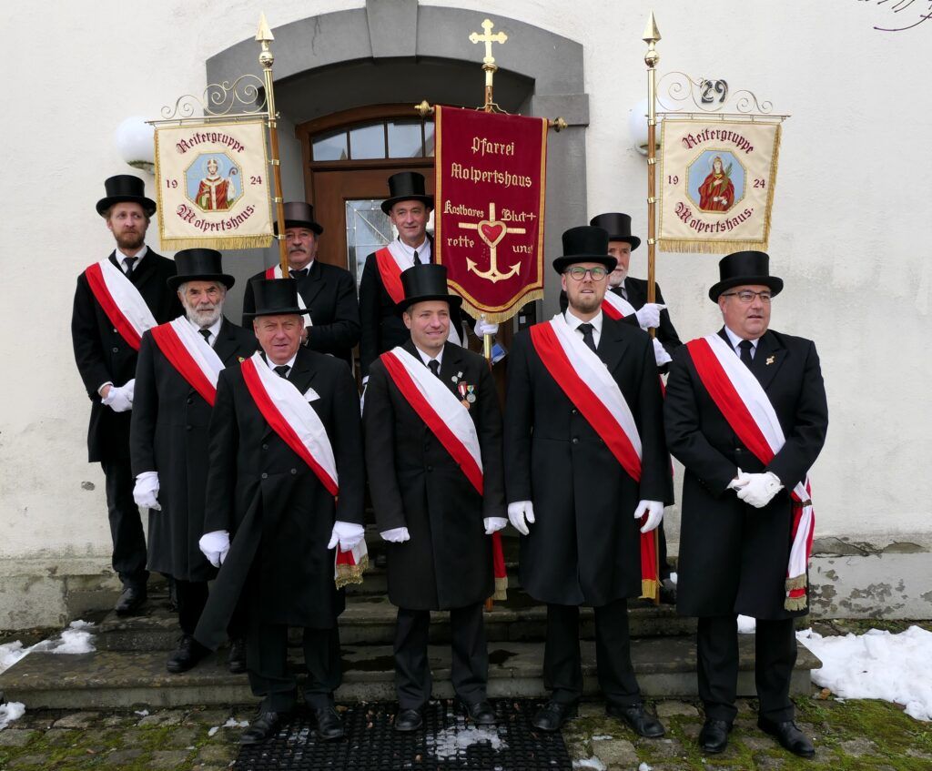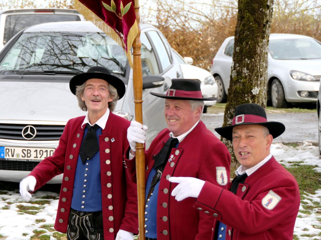 Molpertshaus – Das war ein Festtag, wie er nicht alle Schaltjahre vorkommt! In der kleinen Pfarrgemeinde Molpertshaus (570 Seelen; gehört zur Seelsorgeeinheit Oberes Achtal) wurde am 24. November gleich vierfach gefestet: Zum einen beging man den Christkönigssonntag, der am Schluss des katholischen Kirchenjahres steht. Dann feierte man die Heilige Katharina, die Patronin der Molpertshauser Pfarrkirche (ihr Gedenktag ist der 25. November). Zudem wurde der Volkstrauertag nachgeholt, der als staatlicher Gedenktag heuer regulär am 17. November begangen wurde. Und als Sahnehäubchen beim Molpertshauser „Vierfest“ wurde eine neue Standarte für die Blutreitergruppe gesegnet. Günter Brutscher berichtet: