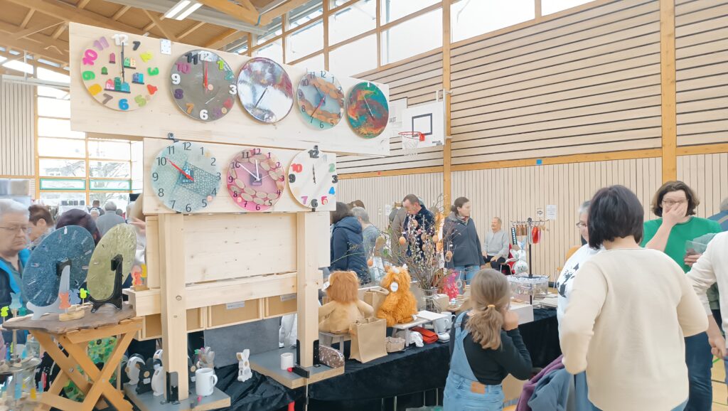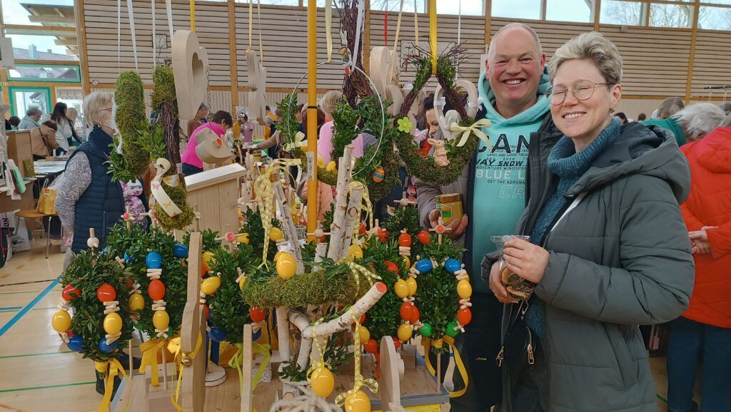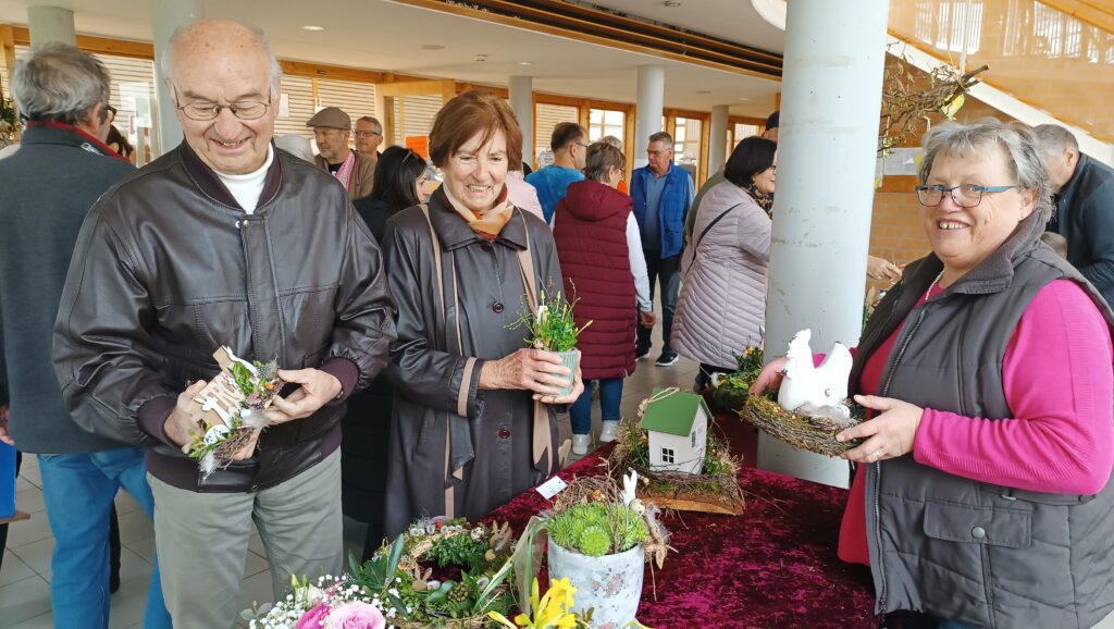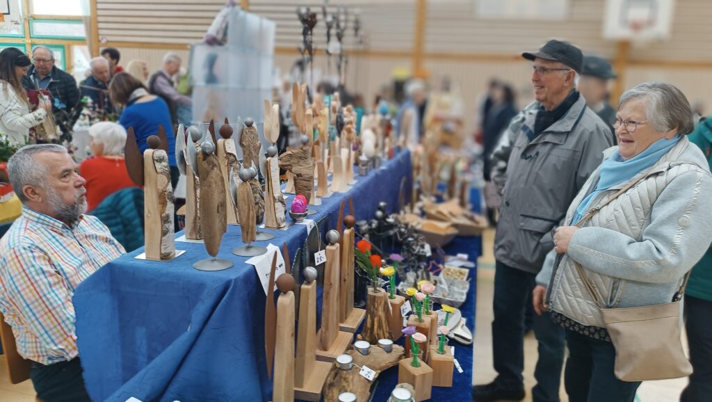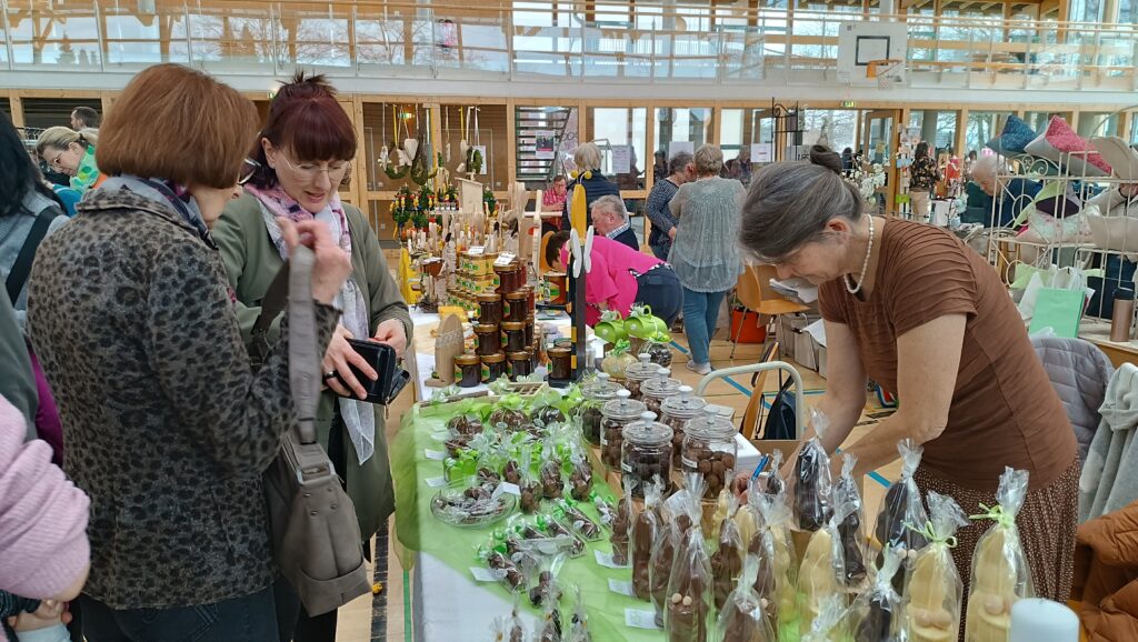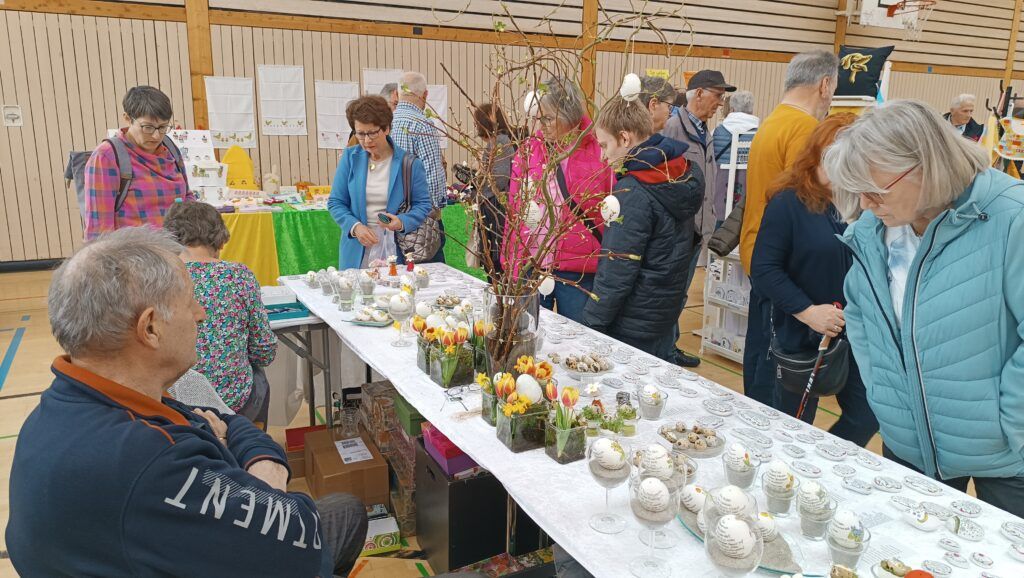 60 Aussteller, Bastler, Handarbeiterinnen und Kunsthandwerker aus der Region, präsentierten an 83 Tischen ihr breitgefächertes Angebot. Es gab eine vielfältige Auswahl wunderschöner Ostergestecke oder -Kränze, kunstvoll bemalte Ostereier, Schokoladenhasen sowie dekorative Teile für Wohnung oder Garten.