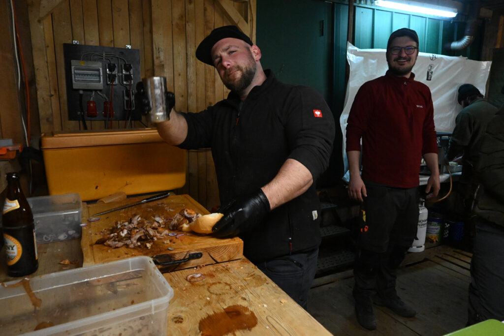 Viel Andrang herrschte an den Getränke- und Essensständen. Die „besten Bratenwecken zwischen Biberach und Kempten“ fanden reißenden Absatz und waren schon vor halb acht ausverkauft. Dafür gab’s noch jede Menge „Rote“, so dass keiner hungrig nach Hause gehen musste.