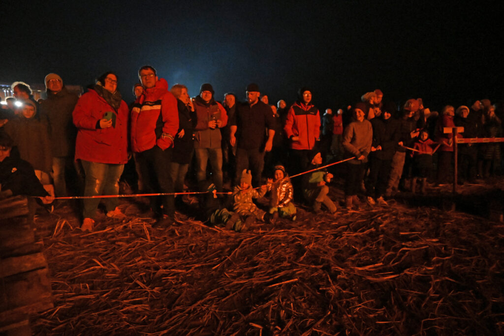 Die Funkenbauer hatten mit Flatterband eine Sicherheitszone eingerichtet, die von den Zuschauern auch brav eingehalten wurde. Familienausflügler setzten ihrer Kinder in die erste Reihe, damit auch die Kleinsten etwas vom Funkenzauber mitbekamen.