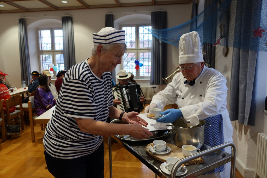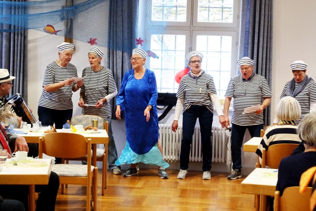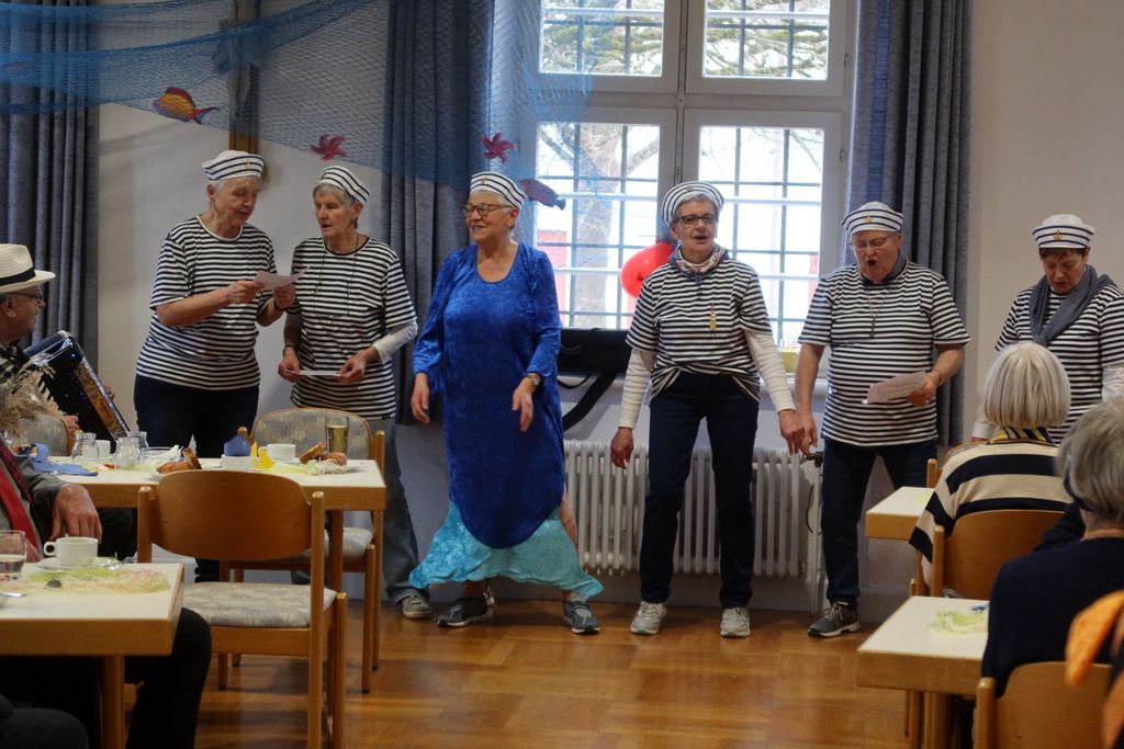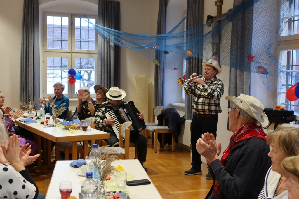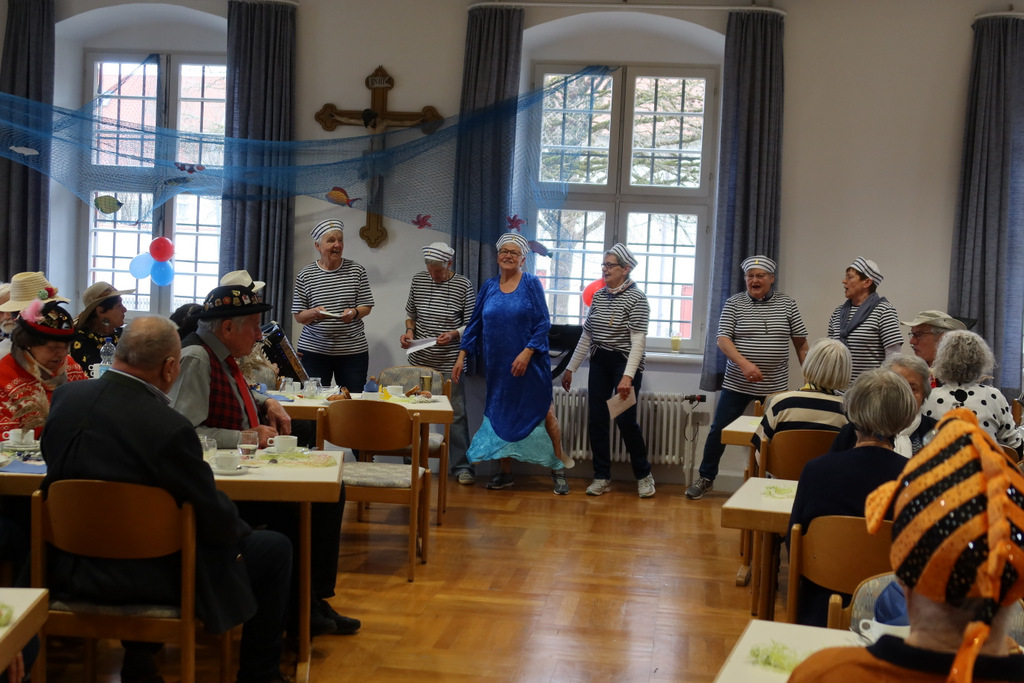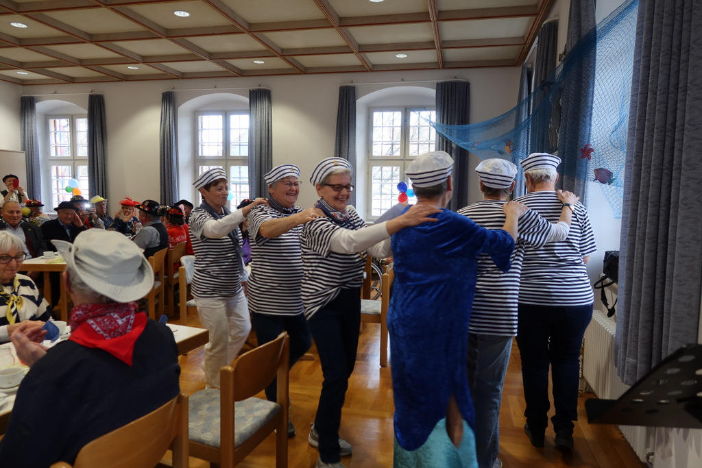 Ein Matrosenteam, das den Saal für das Motto „An der Nordseeküste“ wunderschön mit selbstgefertigten Booten und Fischen geschmückt hatte, empfing eine erwartungsfrohe Gästeschar. Der Pfarrgemeindesaal füllte sich zusehends und schnell war dieser voll belegt.