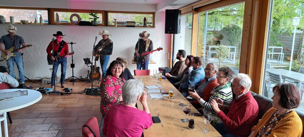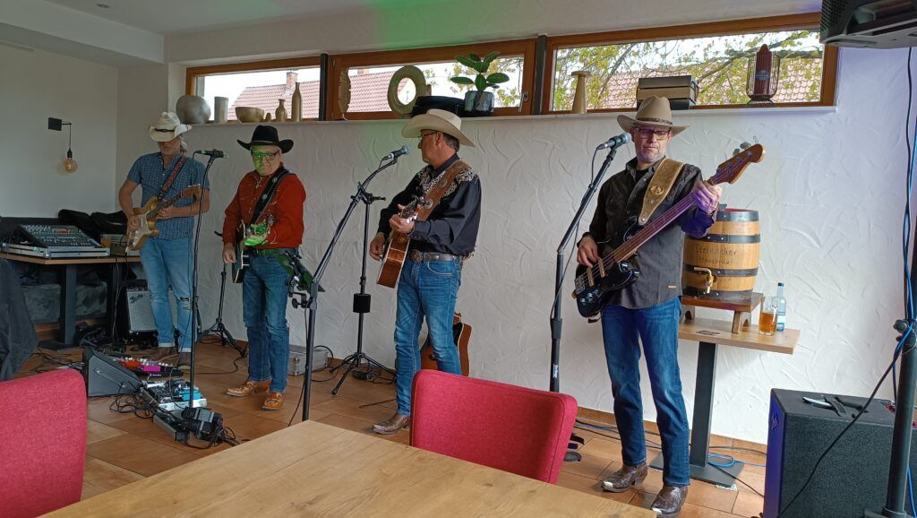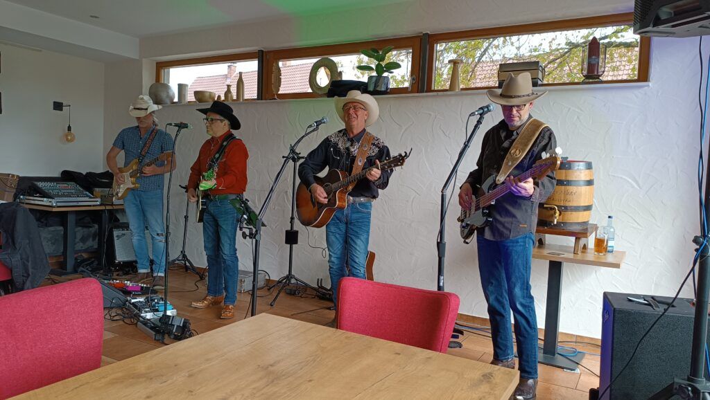 Während unter der Regie von Eugen Maucher die Durlesbach Musikanten Blasmusik vom Feinsten präsentierten, versorgte Familie Elser mit ihrem freundlichem Team die Gäste mit herzhaften Haxen und Enten. Am Nachmittag verwöhnte Valentyna die Besucher mit Kaffee und süßen Spezialitäten. Ab 16.30 Uhr füllten sich die Räume total, etwa 100 Gäste hatten im Vorverkauf bereits Karten für das Benefizkonzert der Band „Grooving Hearts“ erworben. Die bekannte Country-Band mit Eberhard Fitz, Jürgen Hertkorn, Uli Maier und Michael Müller begeisterte Jung und Alt mit ihrem reichhaltigen Repertoire.