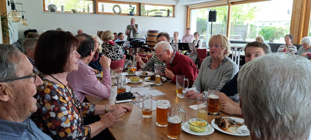 Steinach – Was so schön gedacht war, hatte der Kälteeinbruch am Wochenende 20./21. April doch kräftig durcheinander gewirbelt. So hätten die Durlesbach Musikanten doch gerne vor einer malerischen Apfelbaumblüten-Kulisse zum Frühschoppen auf dem großen Festplatz aufgespielt. Doch Improvisieren hieß einfach, alles zusammenrücken und die große Gaststätte zum Musikpavillon umnutzen.