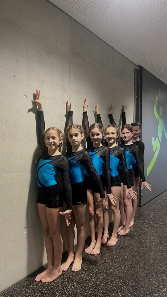 Die E-Jugend mit Mayla Bixenmann, Olivia Bodenmüller, Julia Landthaler, Lara Müller, Lola Schoof, Romy Strobel und Lilou Vidakovic turnten drei sehr gute Wettkämpfe und konnten sich bereits an den ersten beiden Wettkampftagen mit wertvollen Punkten den Sieg sichern. Somit konnten die Mädchen ganz entspannt in den dritten Wettkampf starten. Am Sprung erturnte sich Olivia mit einem perfekten Überschlag auf den Mattenberg die volle Punktzahl. Auch Julia und Romy, die ihren allerersten Wettkampf turnten, konnten nochmals wertvolle Punkte für das Team holen. Überglücklich durften die Mädchen aus einem großen Teilnehmerfeld von 22 Mannschaften schließlich ganz oben auf das Podest steigen und den goldenen Pokal entgegennehmen.