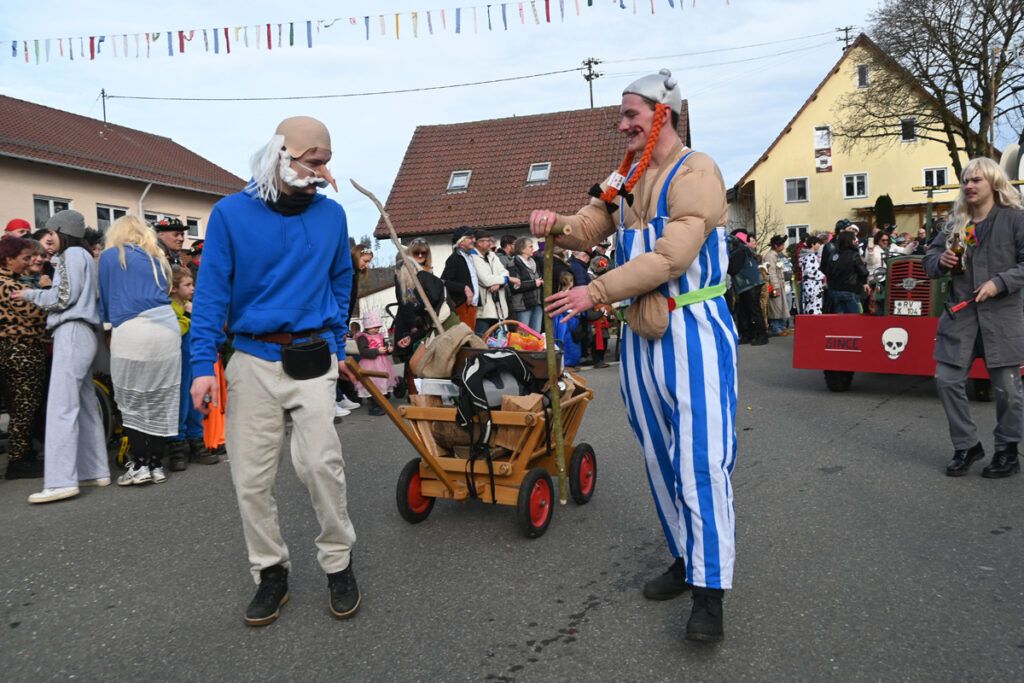 Mitttelurbach – Das Motto „60 Jahre Umzug im Königstal“ hat die Königstäler wieder mal zu Höchstleistungen animiert. Was da an Phantasie und liebevoll gestalteten Verkleidungen und Masken durchs Königstal defilierte, lässt manch Große Kreisstadt vor Neid erblassen. Nur ein Wermutstropfen: Zunftmeister Gere Frick konnte nicht mitspringen. Er musste den Umzug vom Rentnerbänkle aus anschauen, weil er grade schlecht zu Fuß ist. Unser Reporter Erre Linder ist mit Fahrrad und Kamera nach Urbach hinausgestrampelt und hat einen Sack voll Bilder heimgebracht. Schaut in unsere Bilder-Galerie: