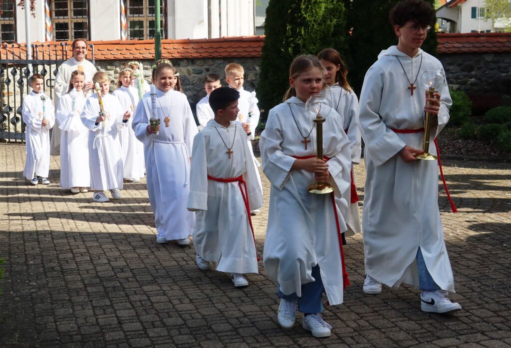 Haisterkirch – Am Sonntag (14. April) feierten zehn Kinder der Kirchengemeinde St. Johannes Baptist Haisterkirch ihre Erstkommunion im gewohnt großen Rahmen.