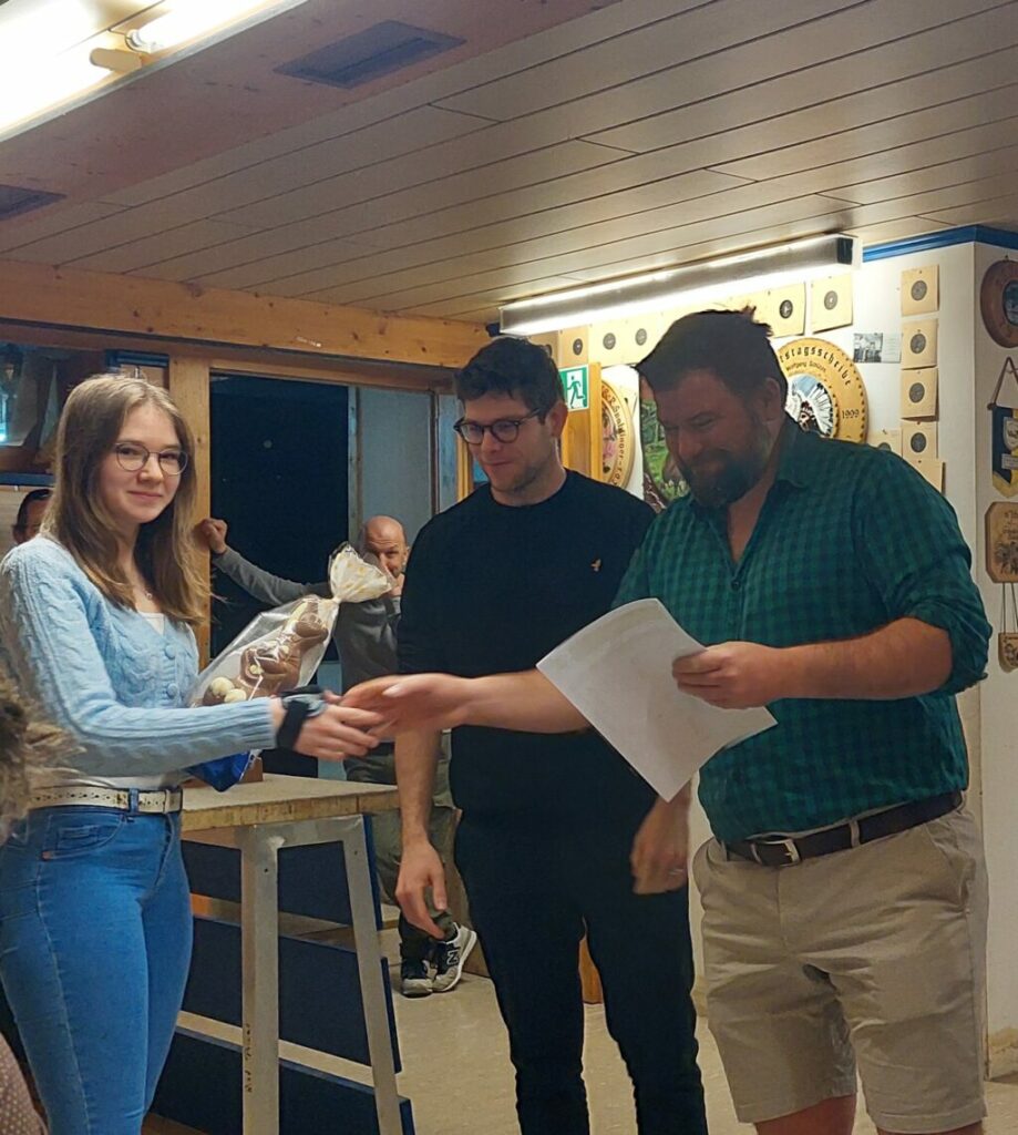Mit dem Besten Teiler des gesamten Wettbewerbs erzielte Sarah Brauchle mit einem 4,0 Teiler in der aktiven Klasse Platz eins und holte sich den riessiegen 2,5 Kilo Osterhasen nach Hause. Auf Platz zwei folgte, ebenfalls mit einem hervorragenden 9,0 Teiler Nicola Harr. Auf den weiteren Plätzen folgten Saskia Harr (Platz 4), Tom Bohner (Platz 5), Sabine Dietenberger (Platz 6), Sarah Geng (Platz 7), Igor Franz (Platz 9) und Thomas Bäurer (Platz 11).