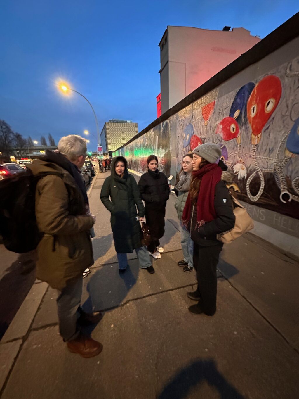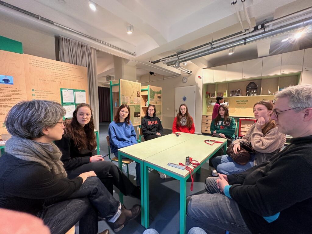 Dabei standen zahlreiche Programmpunkte auf dem Plan wie ein Besuch des Denkmals für die ermordeten Juden Europas am Vorabend des Holocaust-Gedenktags, eine Führung durch die Dauerausstellung des Anne-Frank-Zentrums von Frau Dr. Verena Hauk und ein Besuch im Jüdischen Museum Berlin. Zusätzlich gab es anregende Gespräche mit der Kulturwissenschaftlerin Rebekka Reichert, mit Diplomgeograph Daniel Schrödl, Referent im Wirtschaftsministerium Brandenburg und Jolina Bohnert, einer ehemaligen Schülerin aus Ravensburg, die derzeit eine Ausbildung bei der Charité in Berlin macht. Die drei Wahlberliner konnten den Jugendlichen durch ihre Erfahrungen und ihr zusätzliches Wissen eine neue Perspektive auf die Stadt, aber auch auf aktuelle Erfahrungen mit Rassismus und erstarkendem Rechtsradikalismus geben. „Besonders beeindruckend war für mich das Denkmal für die ermordeten Juden, denn die hohen Stelen wirken vor allem bei Nacht bedrückend, zeigen aber auch, wie wichtig es ist, an die Opfer des Holocaust zu erinnern., meint die Schülerin Clara Schmidt rückblickend.