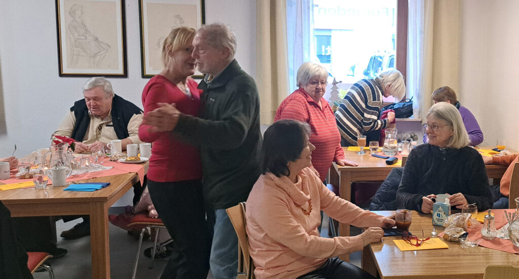 Nach Begrüßung durch Wolfgang Pfefferle führte Uschi Hirsch durch das festliche Programm. Besinnliche, aber auch heitere Worte wechselten mit dem gemeinsamen Singen von Liedern zur Weihnacht. Nach etwa einer Stunde änderte Udo Meier-Böhme sein reichhaltiges Repertoire; dann wurde auch bald zu Walzermelodien getanzt.