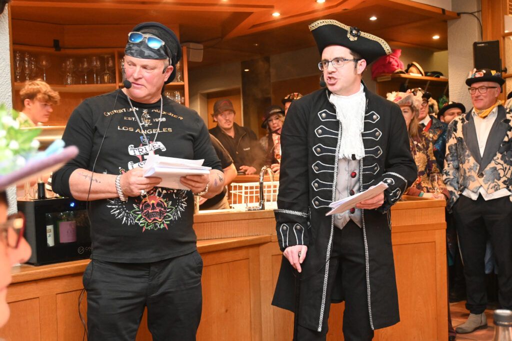 Andi Hepp und Timo Abler übernehmen die Rolle der Zeremonienmeister. Mottogemäß hat sich Andi als Hamburger Lude und Timo Abler als Freibeuter verkleidet. Mit ihrer Performance bringen sie das Stimmungsbarometer weit nach oben.