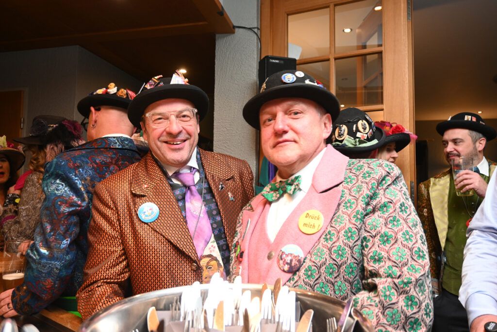 Ein schönes Bild, die bunten Häser, die Fräcke, die geschmückten Hüte und Dachauer voller Abzeichen. Am Sammlerball ist das Sammlervökle ganz unter sich und macht Fasnet ganz für sich. Laut, lustig und ein wenig schrill.