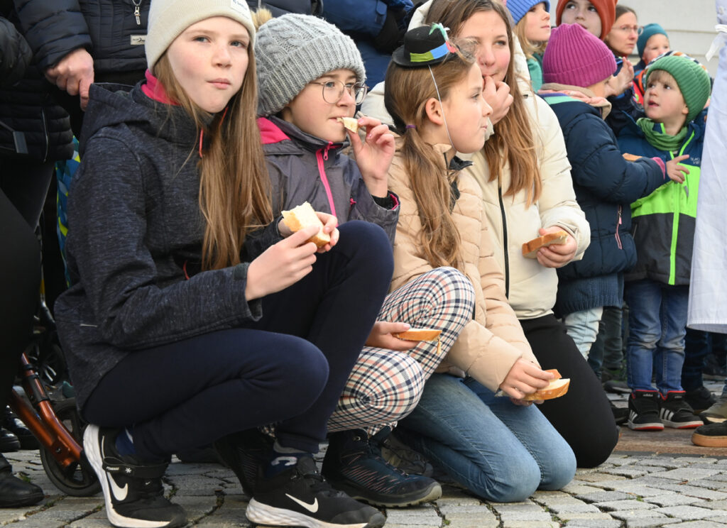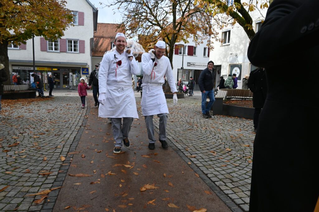 Zwischendurch spielte die Sammlermusik noch etliche Schunkler und „Hände zum Himmel“ und die Bäckergesellen sorgten dafür, dass auch wirklich jeder ein Stück Martini-Zopf zum Futtern bekam. Grad schee war’s.