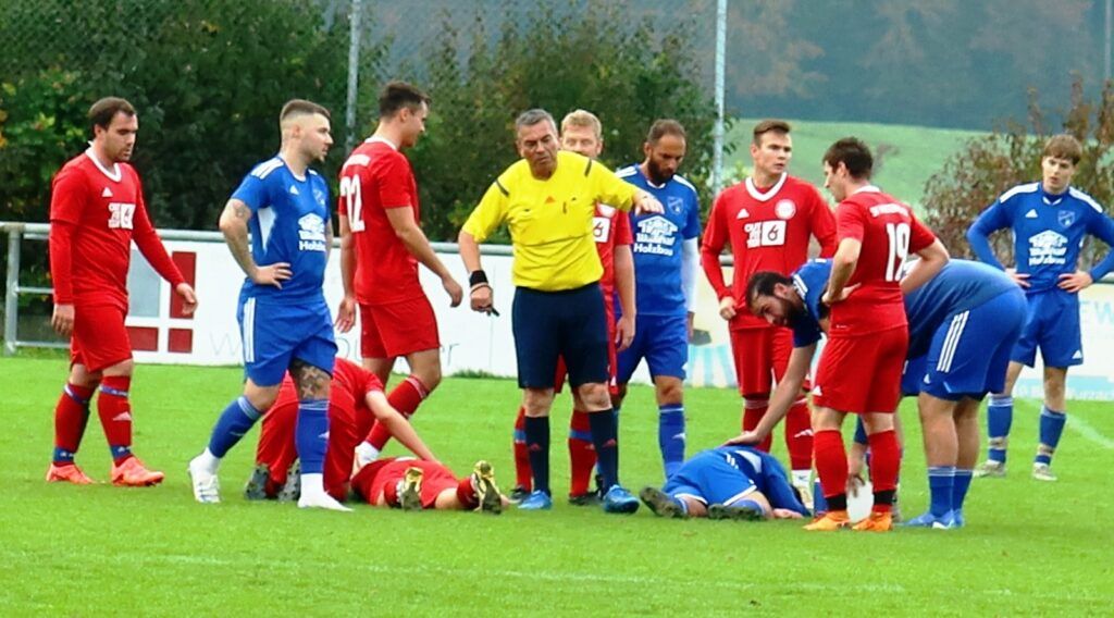 Aufmerksam und sicher leitete ein erfahrener Schiedsrichter aus dem Kreis Biberach die durchaus faire Begegnung, die in der Nachspielzeit durch einen unglücklichen Zusammenprall zweier Spieler eine längere Unterbrechung zur Folge hatte.