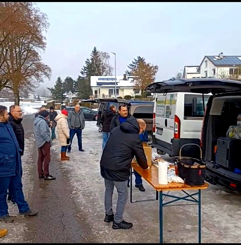 Organisiert war alles bestens . Schon nach der Ankunft auf dem Parkplatz wurden alle mit Getränken und Leberkäswecken versorgt.