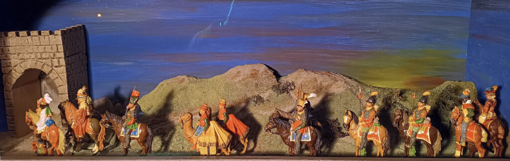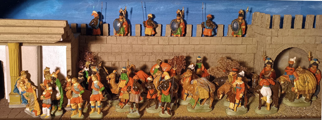 Anbetung der heiligen drei Könige. Nach der Voestellung des Künstlers Anton Sohn waren sie mit großem Gefolge einschließlich Kamel und Elefant gekommen.