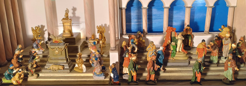 Diese Terrakotta-Figuren aus der ersten Hälfte des 19. Jahrhunderts seien in „der Ansammlung einmalig und von besonderem Wert“, erklärt Lorenz Roming, über den die Krippe nach Kümmerazhofen gekommen ist. „Das passt wunderbar zu unsrem diesjährigen roten Faden durch den Advent“, dachte sich Pfr. Stefan Werner und unterstützte die Aktion, an deren Zustandekommen Kapellenmesner Josef Schmid maßgeblich beteiligt war. In der Seelsorgeeinheit Bad Waldsee wurde und wird in der diesjährigen Advents- und Weihnachtszeit immer wieder an das Jubiläum 800 Jahre Greccio erinnert, wo der Hl. Franziskus eine erste lebendige Krippenfeier inszenierte und worauf sich dann auch die Krippenbaukunst nach und nach entwickelte. Mit Blick auf dieses Krippenjubiläum ist es für Pfarrer Werner eine besondere Freude, die wertvolle und eigentümliche Zizenhausener Krippe, die in besonderer Weise ins Weihnachtsgeschehen hineinführt, in einem Gotteshaus der hiesigen Raumschaft zu wissen.